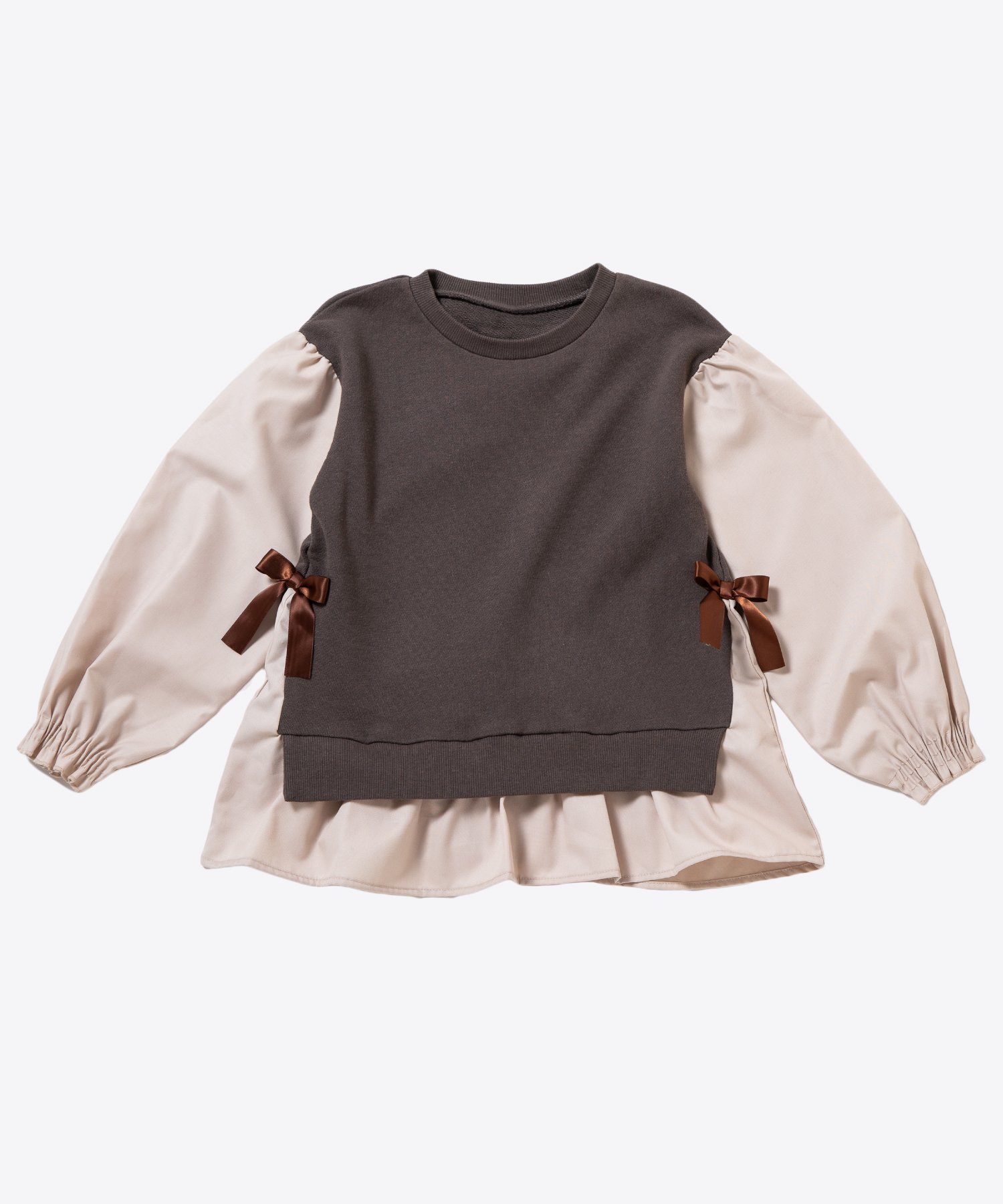 ДизайнОбъемные складки придают ему девичий видСоздает мягкий силуэт.С незавязанными лентами с обеих сторондля девичьего дизайна.Низ выполнен в стиле «докинг»!Стильный образ, дополненный всего одним комбинезоном♪