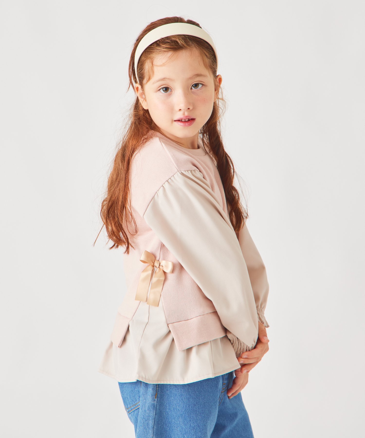 ДизайнОбъемные складки придают ему девичий видСоздает мягкий силуэт.С незавязанными лентами с обеих сторондля девичьего дизайна.Низ выполнен в стиле «докинг»!Стильный образ, дополненный всего одним комбинезоном♪