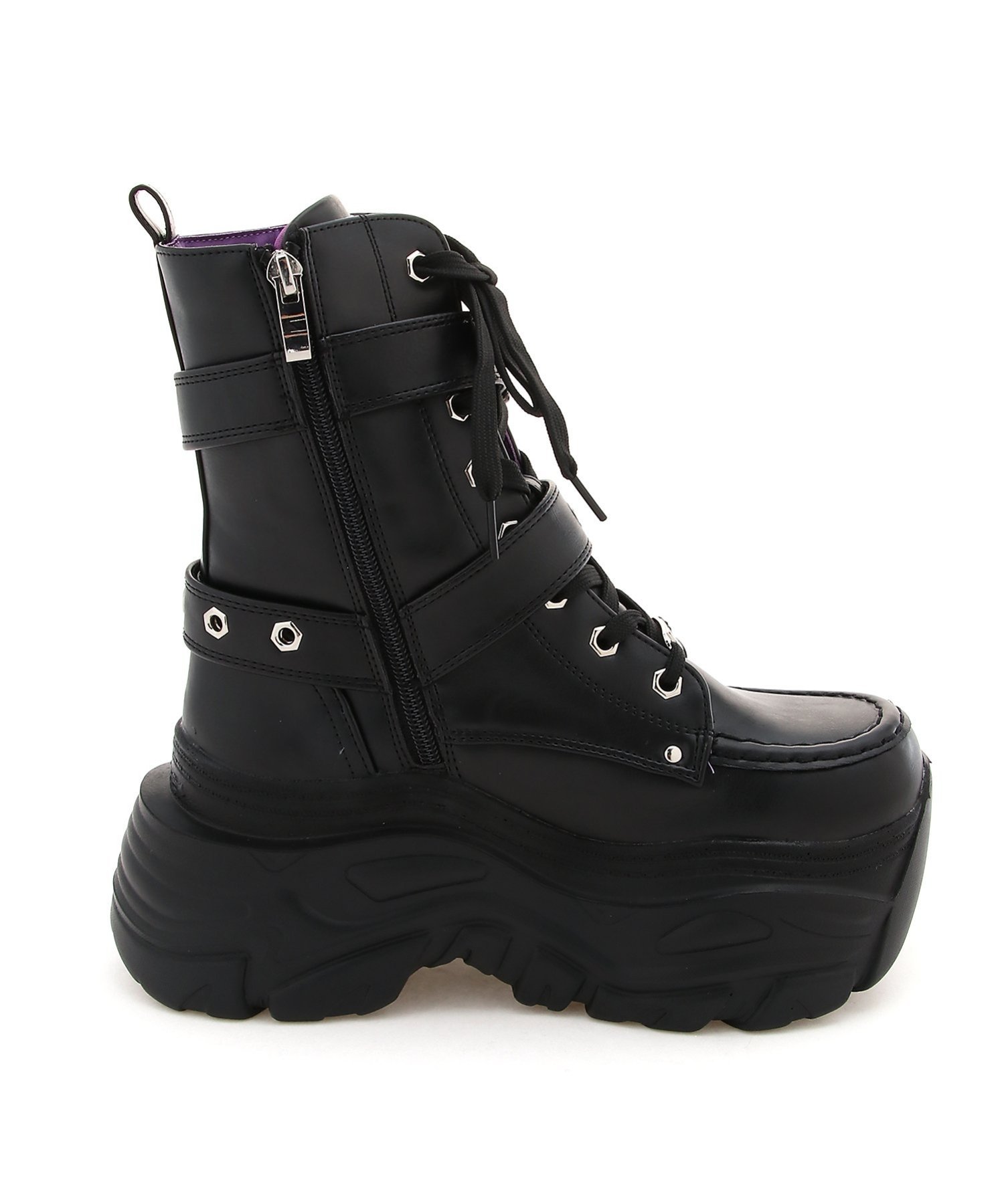 Эти ботинки имеют шнуровку и ремешок, создавая слегка жесткий и смелый образ. Несмотря на то, что это ботинки, в них используется оригинальная подошва YOSUKE, применяемая в кроссовках, что делает их мягкими и удобными в ношении, позволяя носить их так же комфортно, как и кроссовки. Однотонная отделка позволяет легко сочетать их с различными стилями.