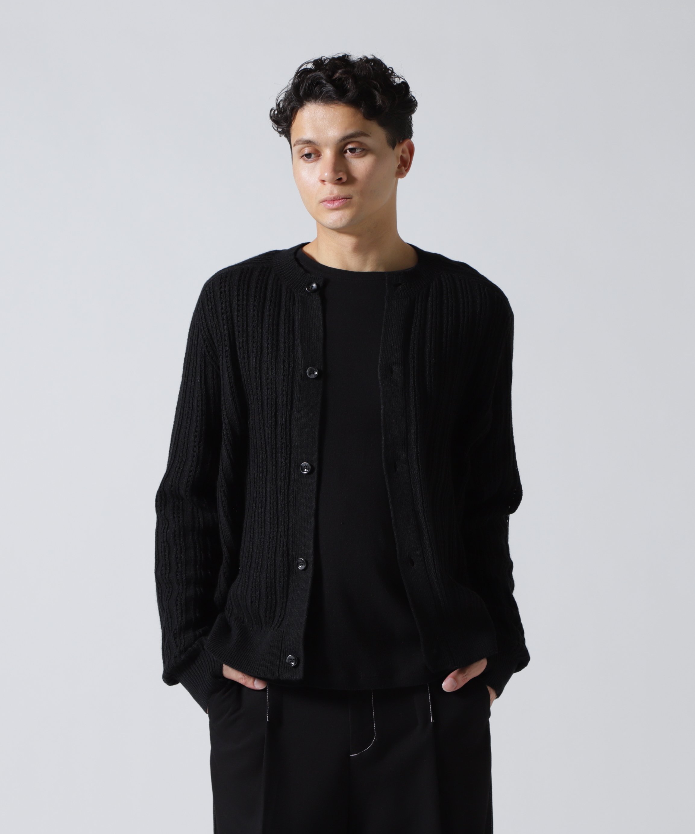 Трехмерная вертикальная резинка этого вязаного кардигана создает ненавязчивый эффект.
