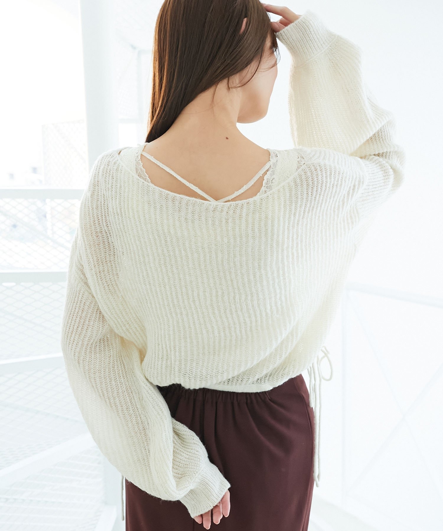 Длина регулируется способом завязывания завязки по низу. ※Длина от горловины: 40 см