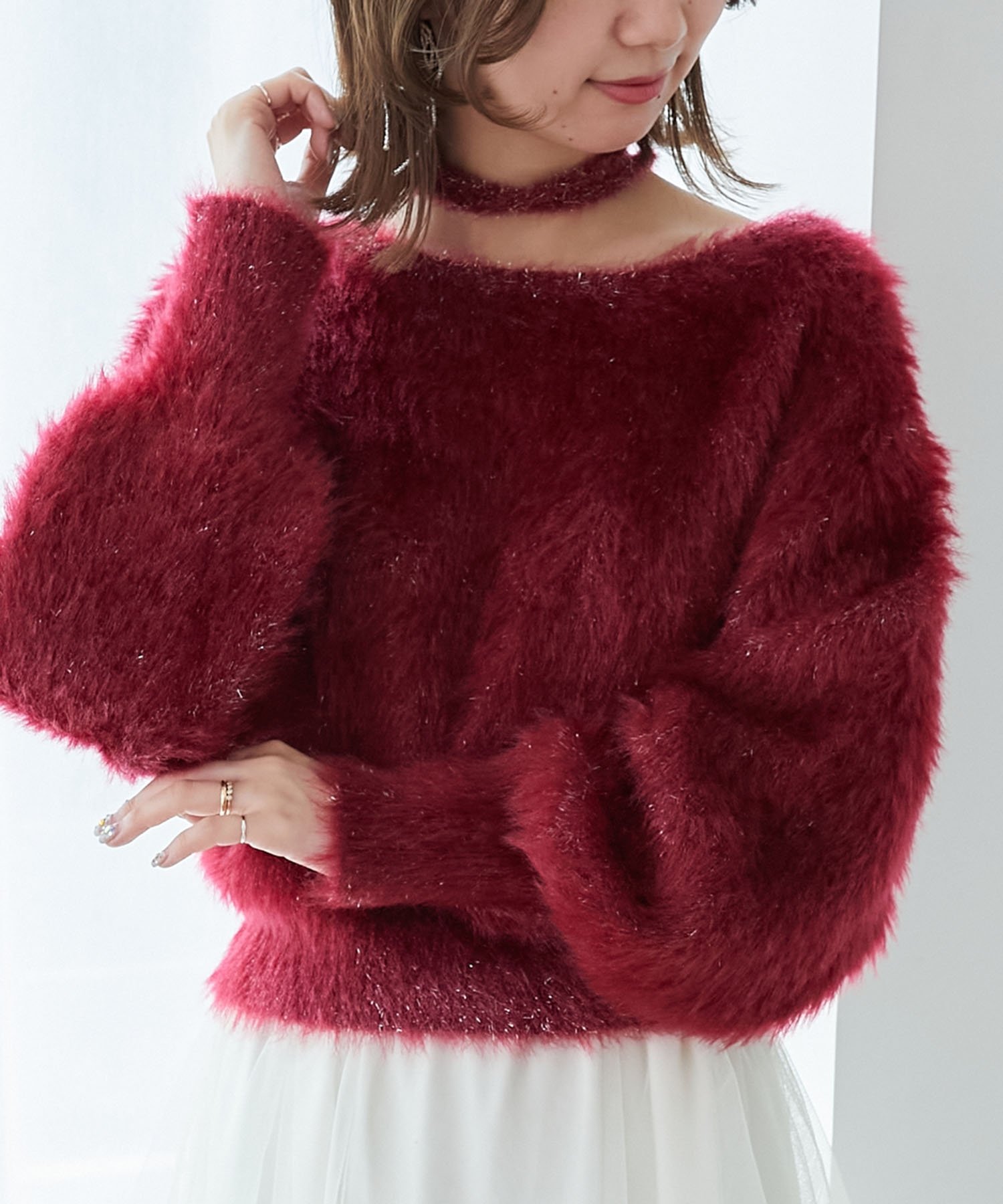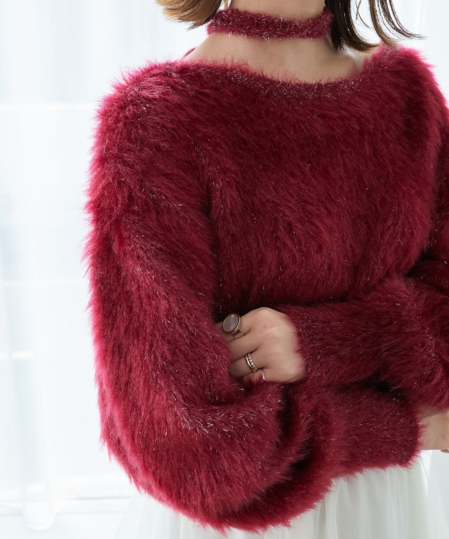 В комплекте идет съемный чокер, позволяющий создавать два варианта стилизации, акцентируя внимание на шее.