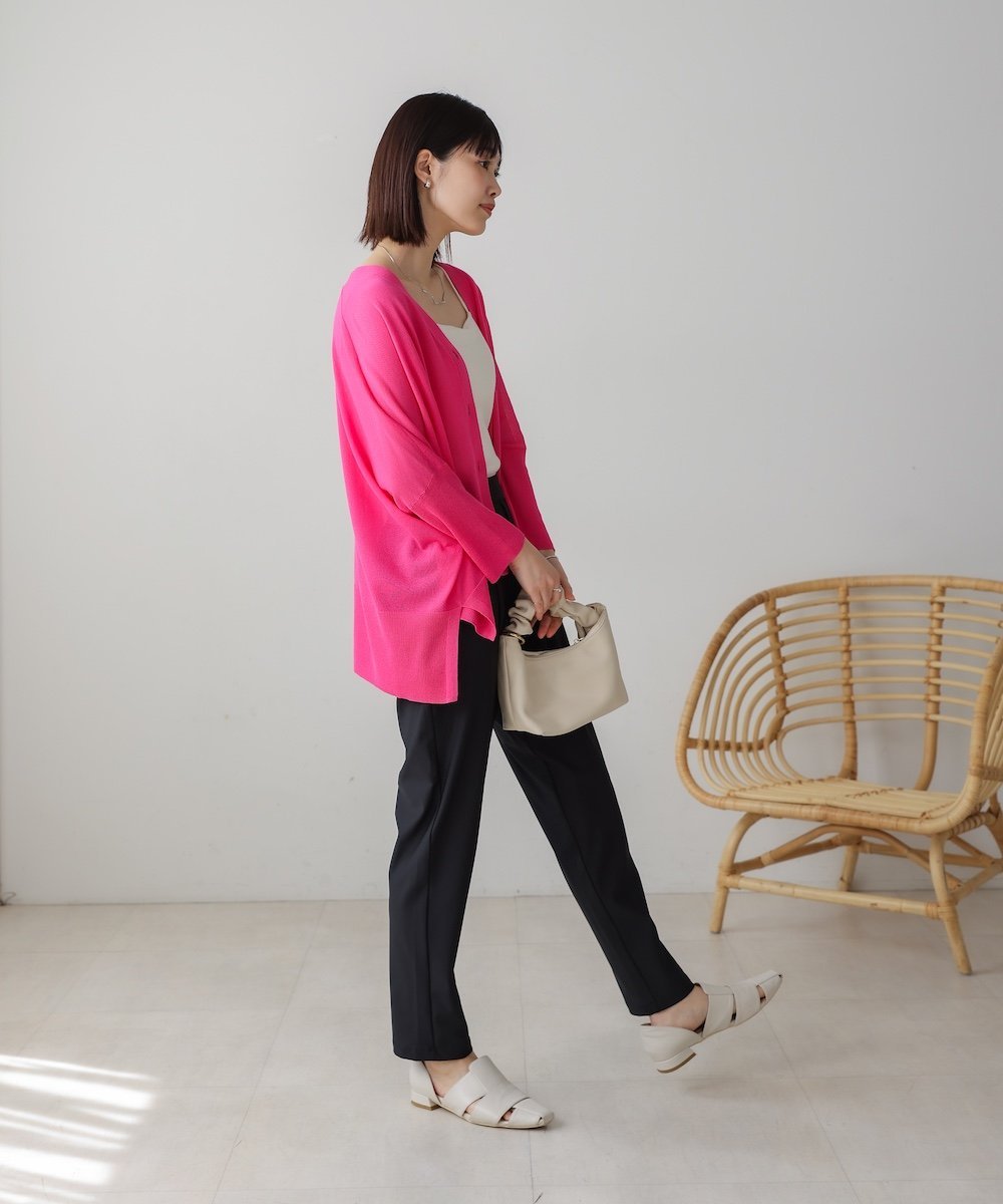 Топ, сшитый из специальной трикотажной ткани, тщательно отобранной из пряжи. Эластичность в четырех направлениях обеспечивает свободу движений, а умеренная толщина ткани означает, что линии нижнего белья будут менее заметны. Поверхность имеет легкое пятноотталкивающее покрытие, что делает его отличным выбором для повседневного использования.