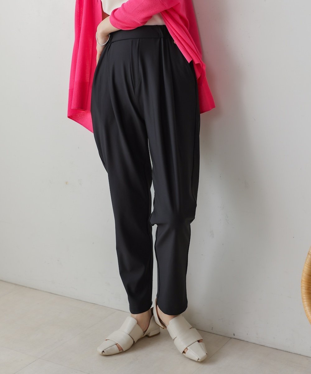 Эти элегантные брюки были усовершенствованы с акцентом на красивый силуэт. Складки спереди закрывают бедра, которые обычно выпирают. Мы сосредоточились на создании силуэта, который сужается к икрам. Края обработаны строчкой, которая придает лодыжкам аккуратный вид. Внутри есть шнурок, который можно затянуть, если брюки слишком свободные.