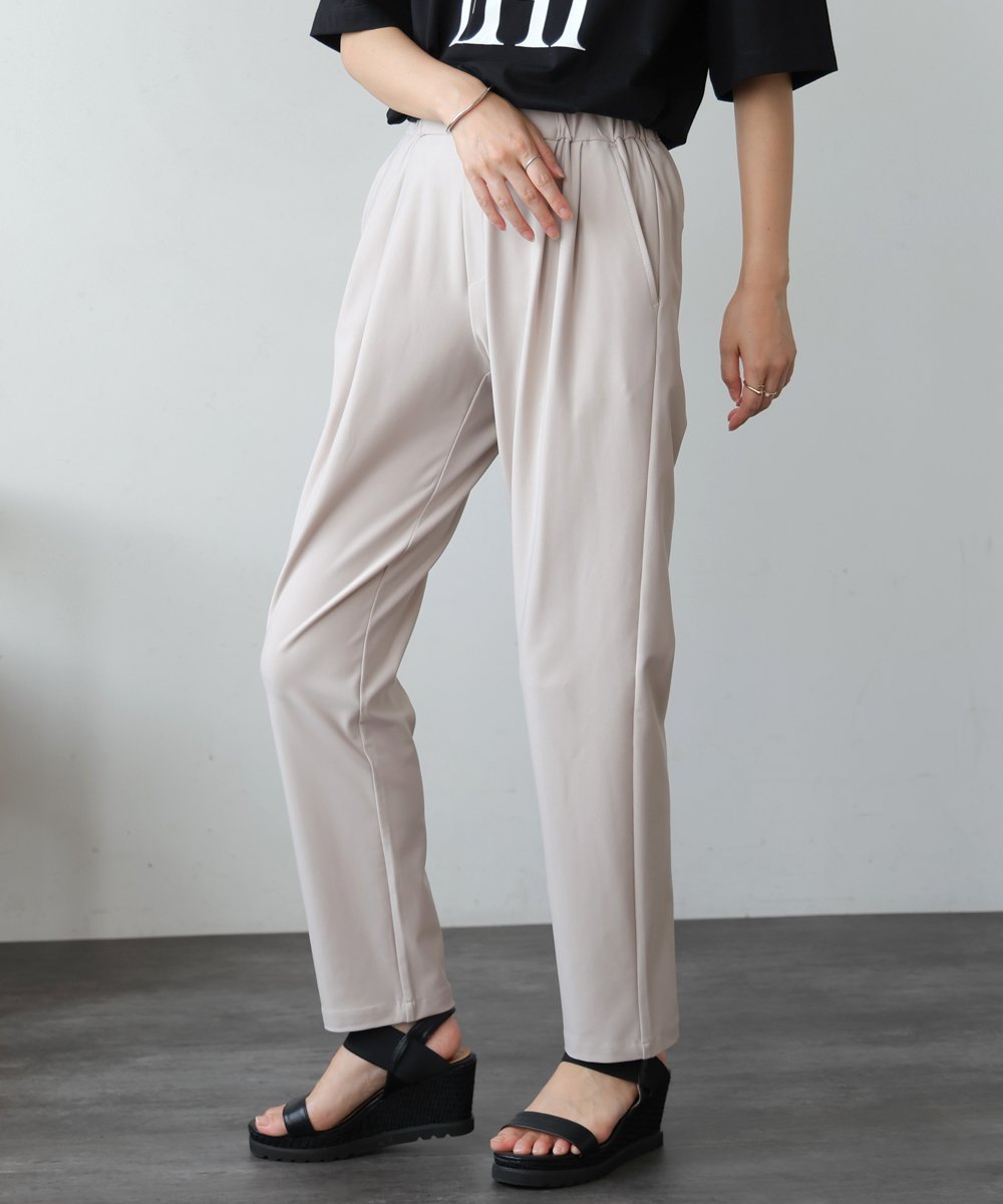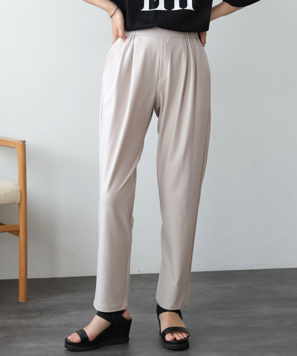 Эти элегантные брюки были усовершенствованы с акцентом на красивый силуэт. Складки спереди закрывают бедра, которые обычно выпирают. Мы сосредоточились на создании силуэта, который сужается к икрам. Края обработаны строчкой, которая придает лодыжкам аккуратный вид. Внутри есть шнурок, который можно затянуть, если брюки слишком свободные.