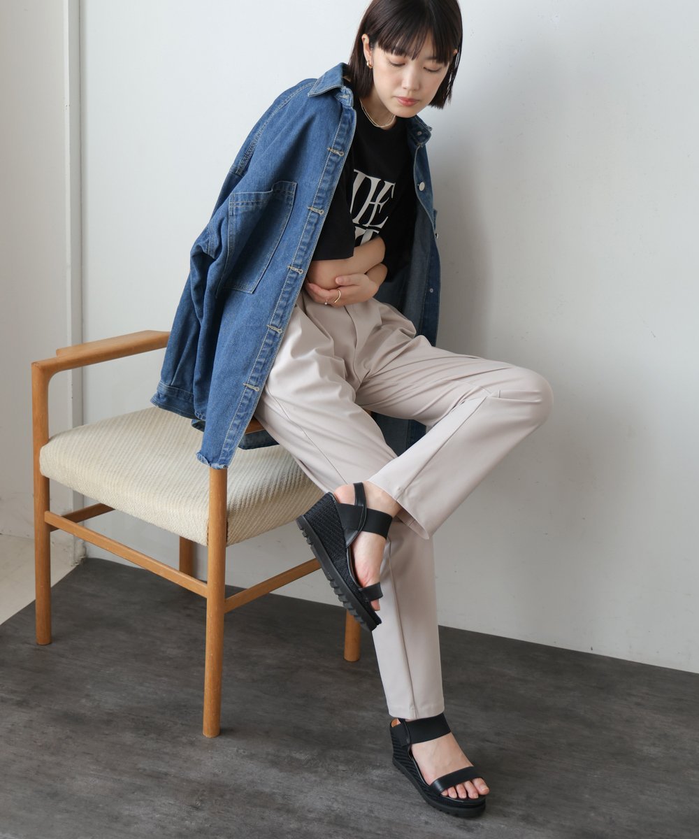 Топ, сшитый из специальной трикотажной ткани, тщательно отобранной из пряжи. Эластичность в четырех направлениях обеспечивает свободу движений, а умеренная толщина ткани означает, что линии нижнего белья будут менее заметны. Поверхность имеет легкое пятноотталкивающее покрытие, что делает его отличным выбором для повседневного использования.