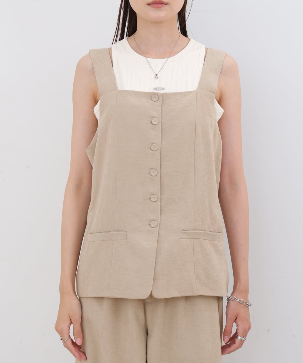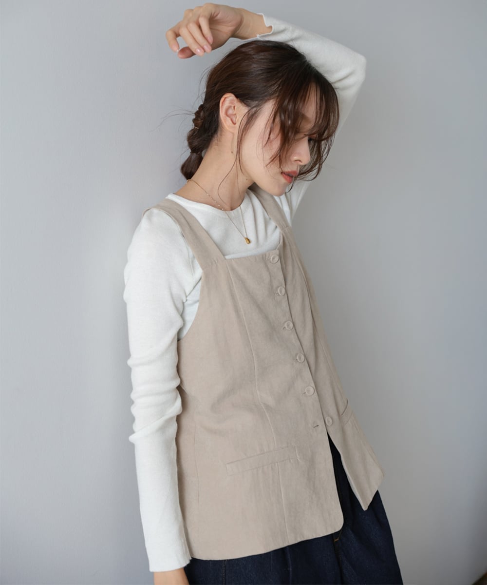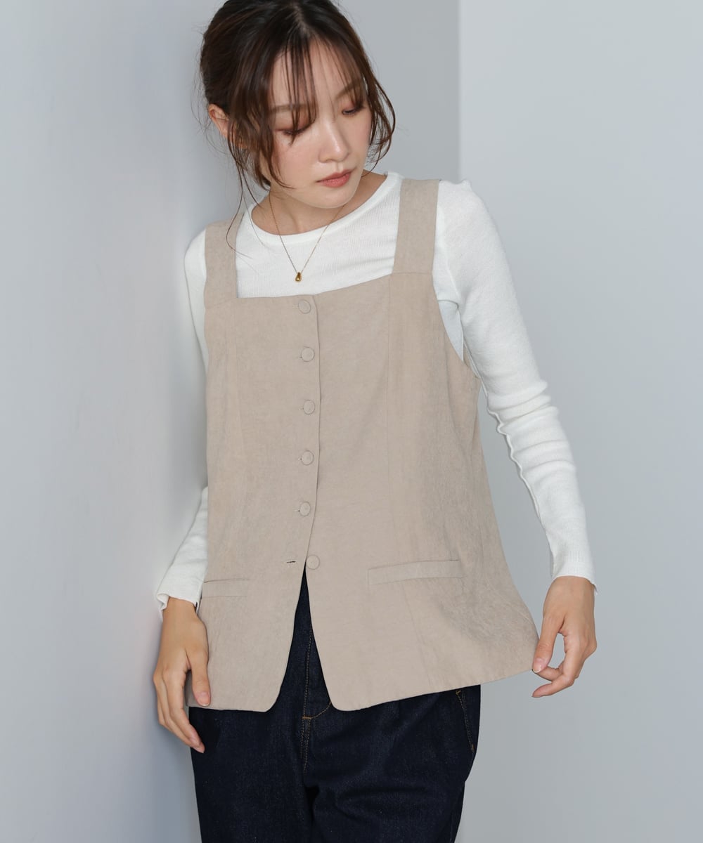 POINTПредставляем этот привлекательный жилет с квадратным вырезом и прикрепленной лентой! Он подчеркивает вашу линию I-образного силуэта, естественно улучшая вашу фигуру просто от ношения. Прилагаемую ленту можно носить на шее для модного образа или на талии для создания стильного акцента. Он изготовлен из ткани, идеально подходящей для осени, но без рукавов, поэтому вы можете надеть его немного раньше в этом сезоне.