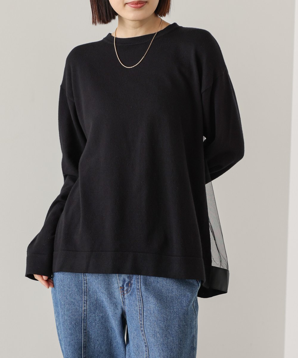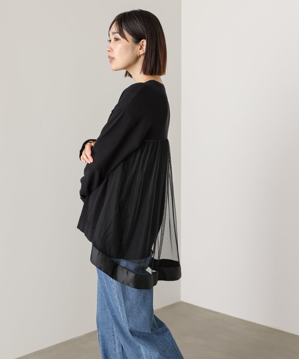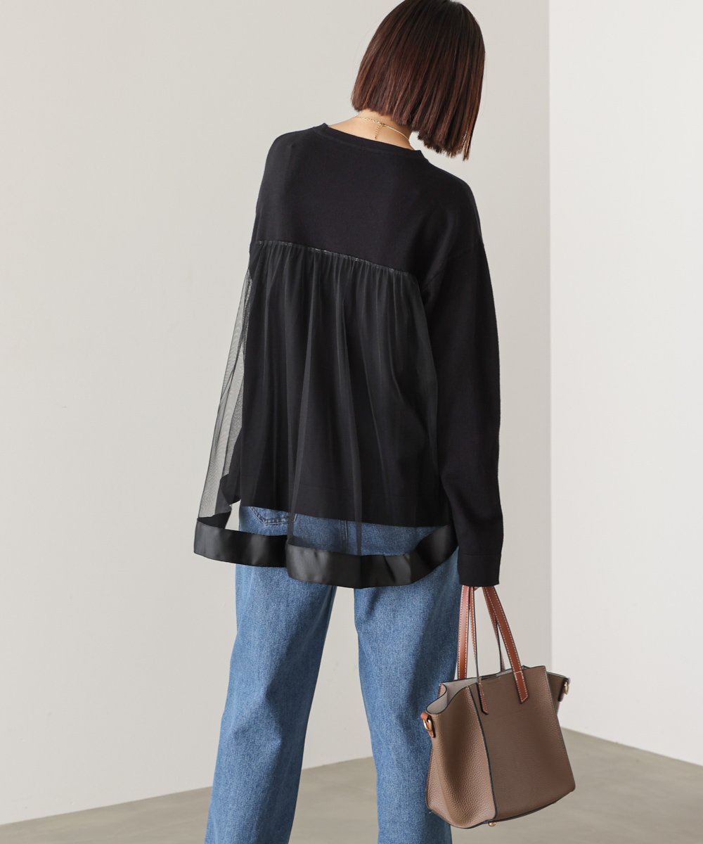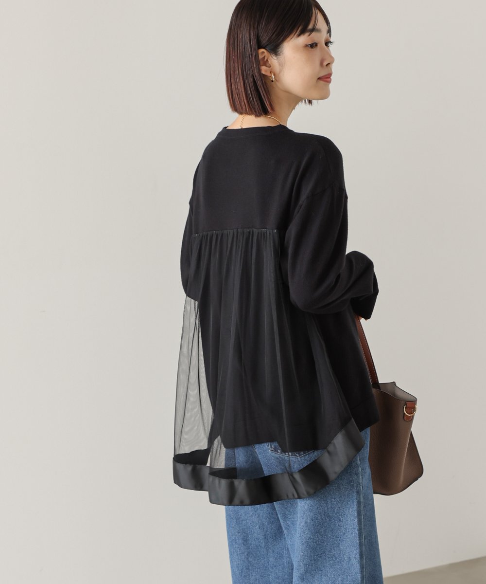 Простая трикотажная ткань спереди и тюль сзади создают милый дизайн, который продолжается и на спине. Мягкий тюль колышется при каждом движении, подчеркивая вашу женственность. Доступен как в однотонном, так и в полосатом варианте, вы можете выбрать тот, который лучше всего подходит вашему стилю. Полосатый узор был тщательно разработан с учетом шага и сочетания цветов, чтобы его было легко носить даже женщинам зрелого возраста.
