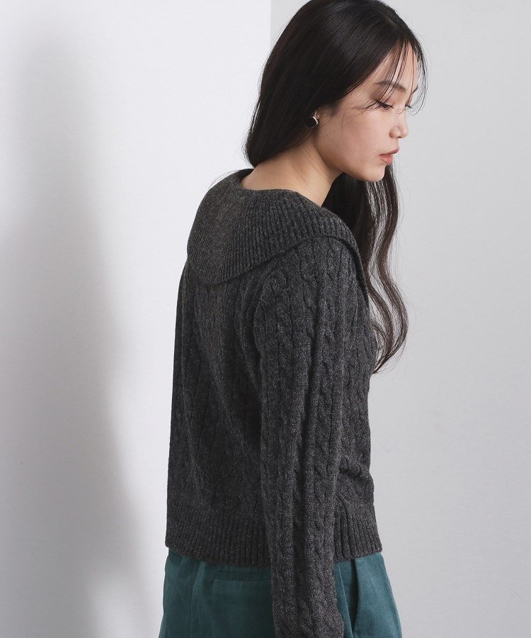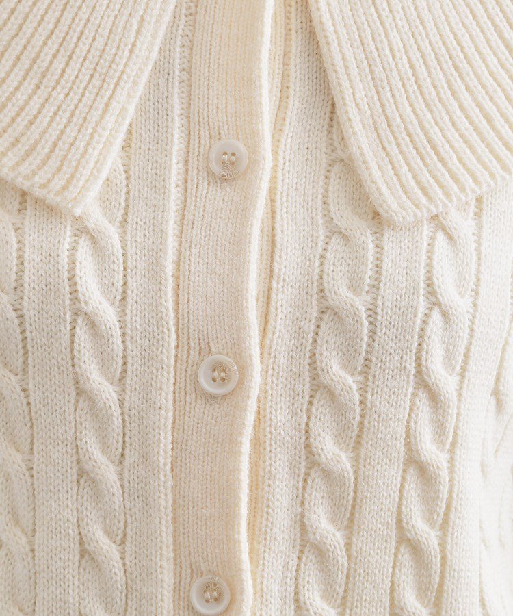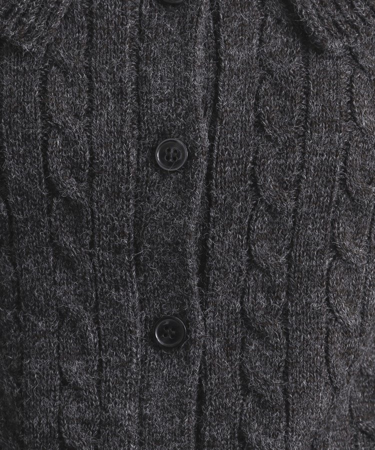 Тканый кардиган средней плотности с косами и большим воротником.