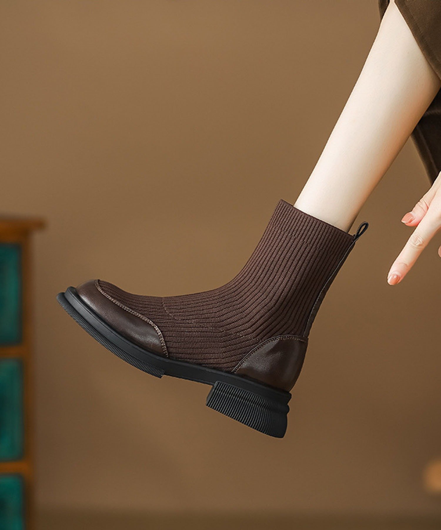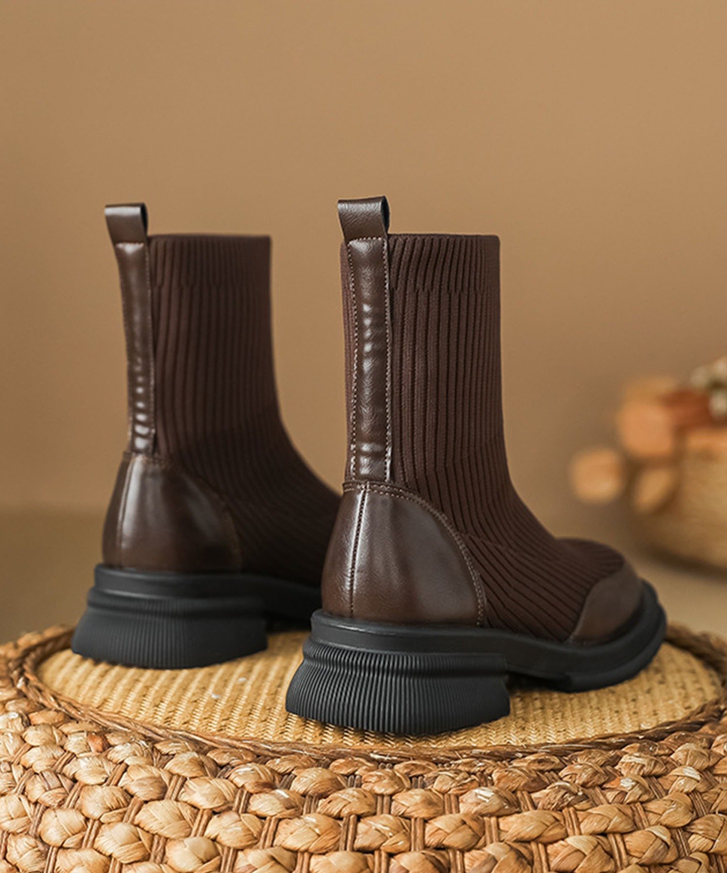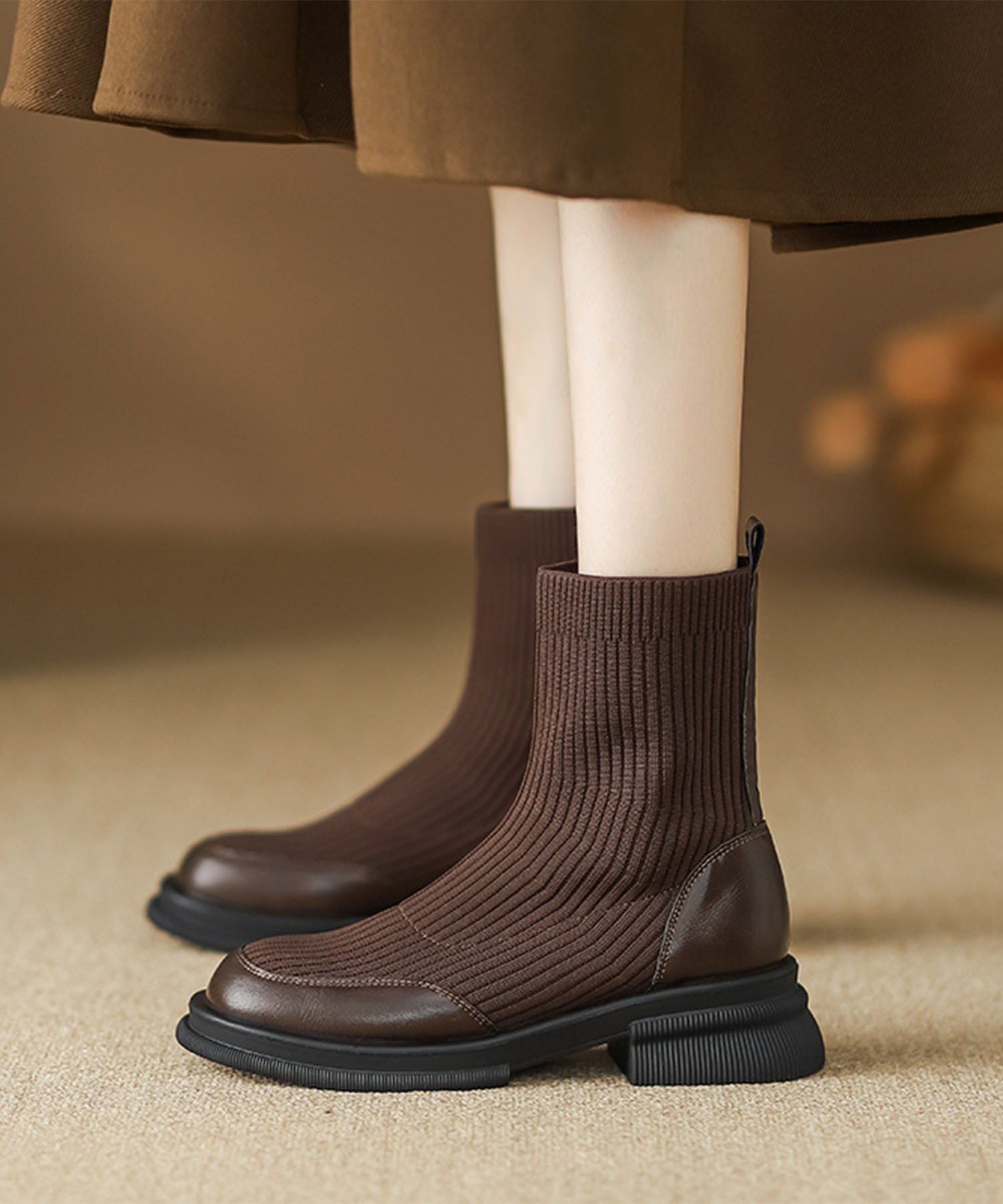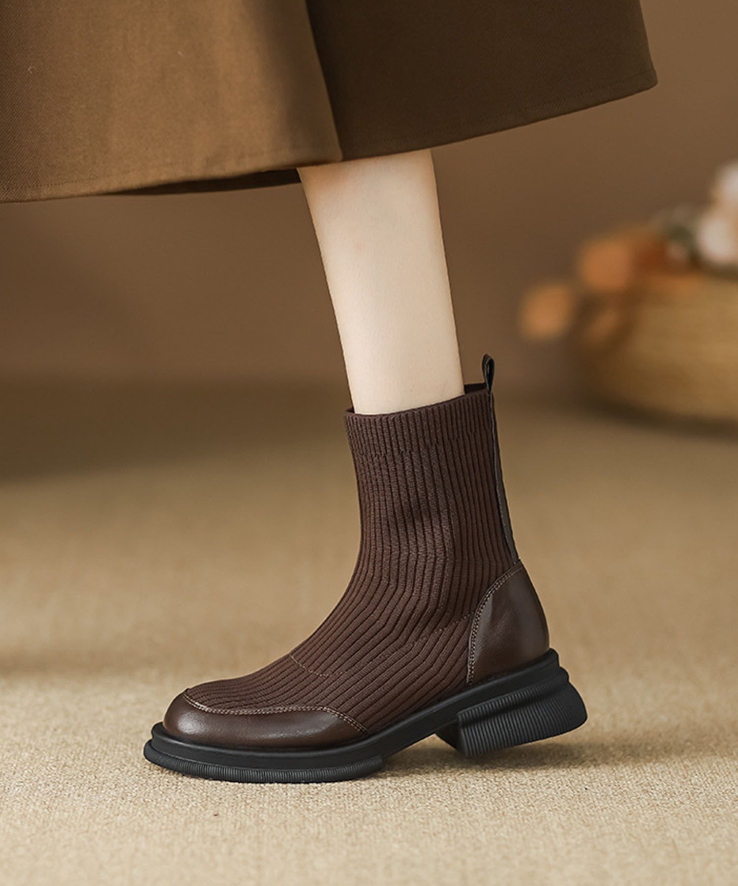 Эти короткие ботинки отличаются уникальным ребристым вязаным верхом, который привлекает внимание.