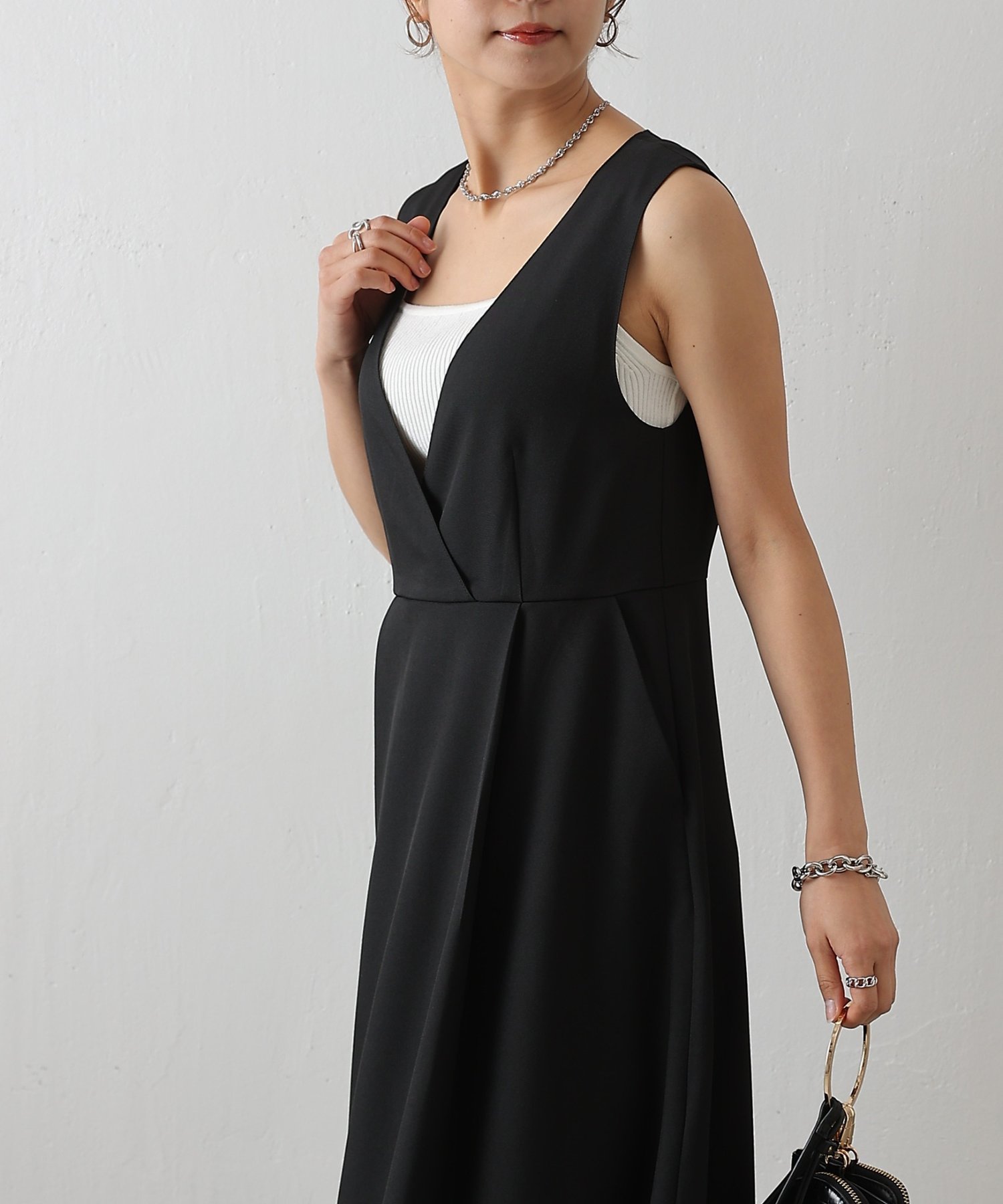 Это платье без рукавов имеет дизайн с запахом на груди, что создает женственный, непринужденный и элегантный образ.
