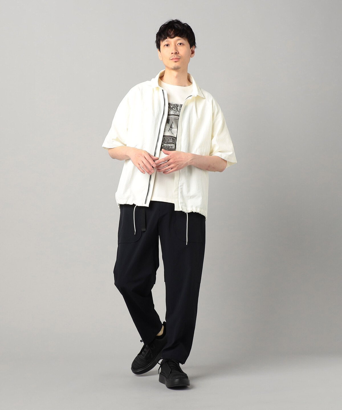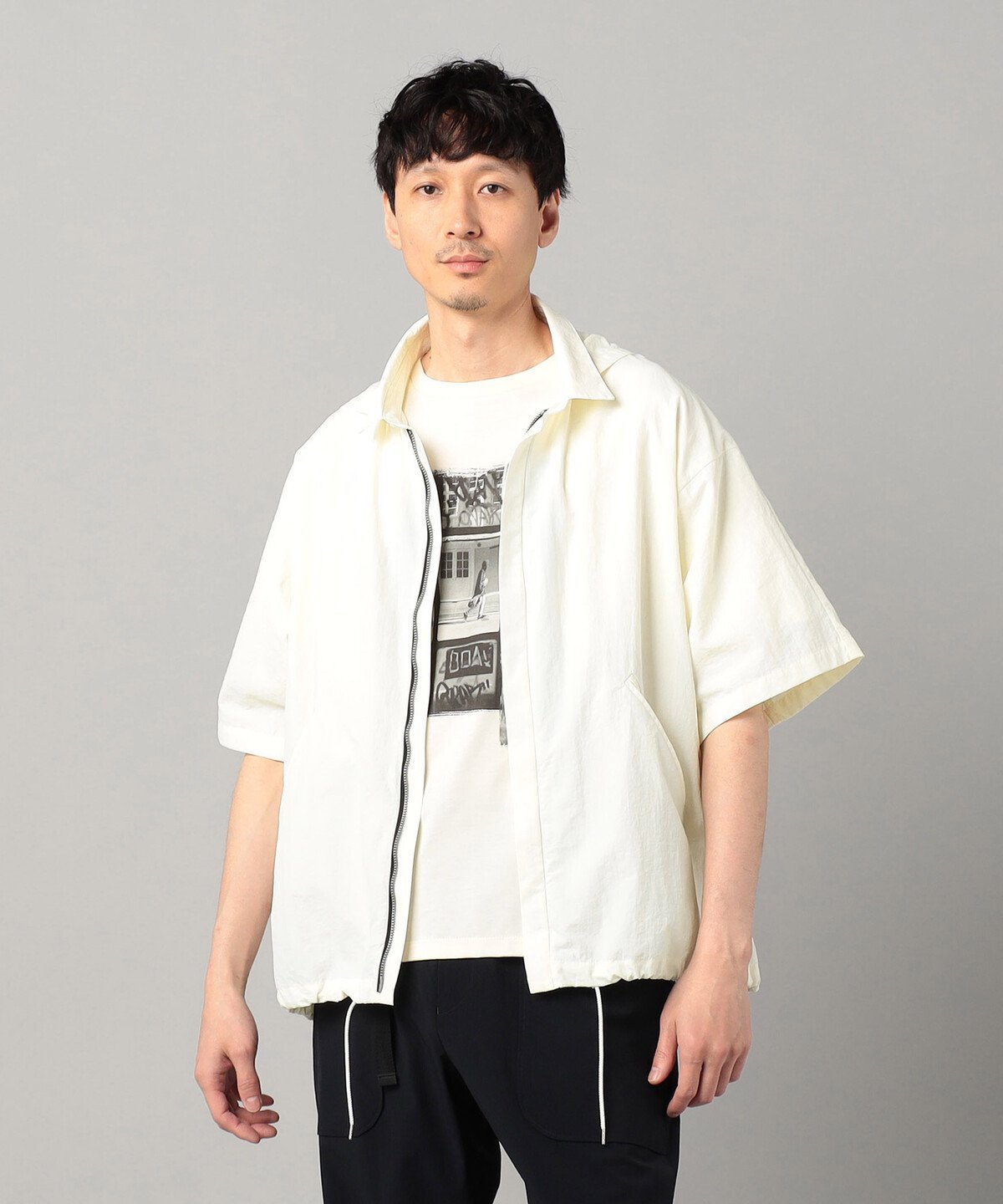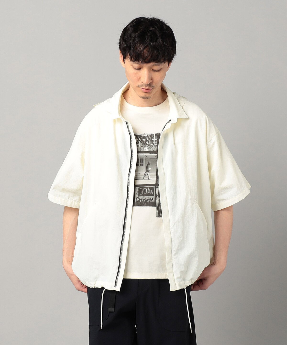 Эта блузон с короткими рукавами напоминает рубашку, а потайная планка выполнена на молнии вместо пуговиц, что облегчает надевание и снимание.