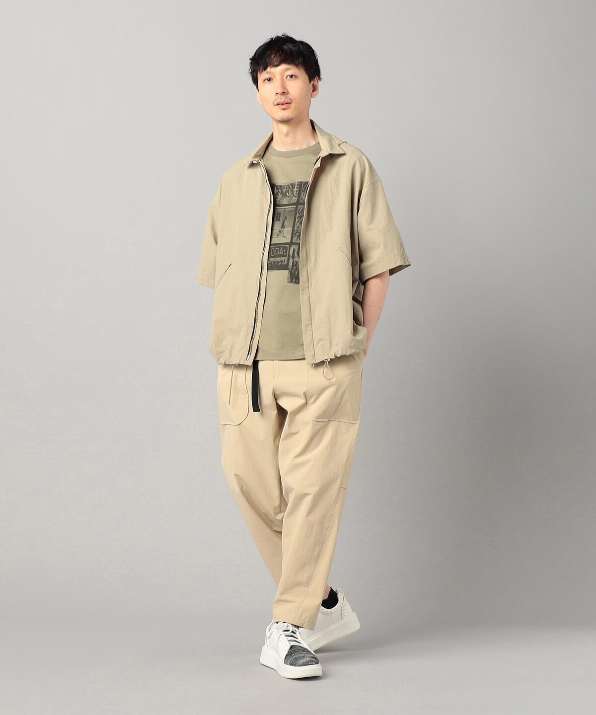 Эта блузон с короткими рукавами напоминает рубашку, а потайная планка выполнена на молнии вместо пуговиц, что облегчает надевание и снимание.