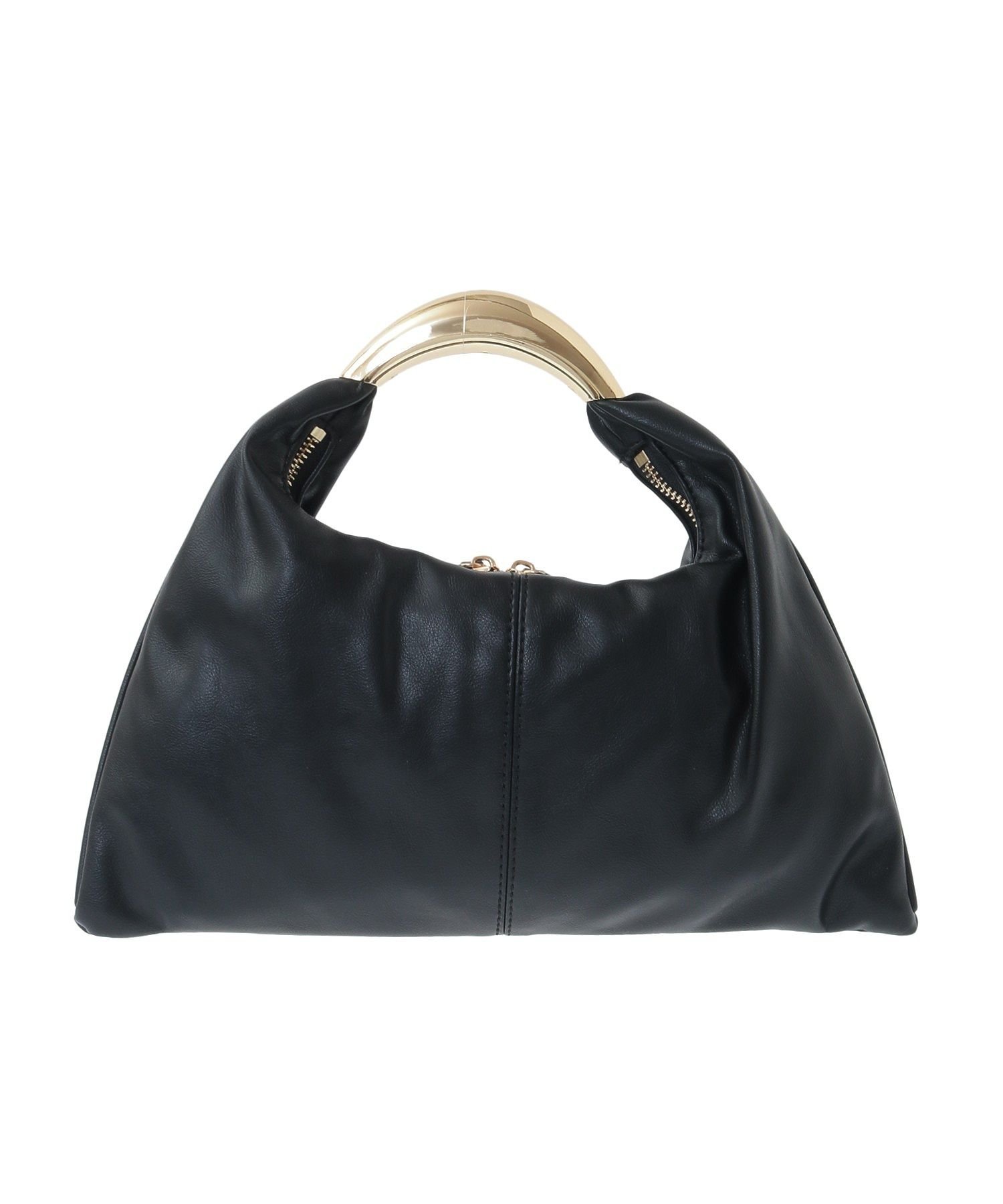 Дизайнерская сумка с привлекательной трехмерной металлической ручкой, напоминающей скульптуру.