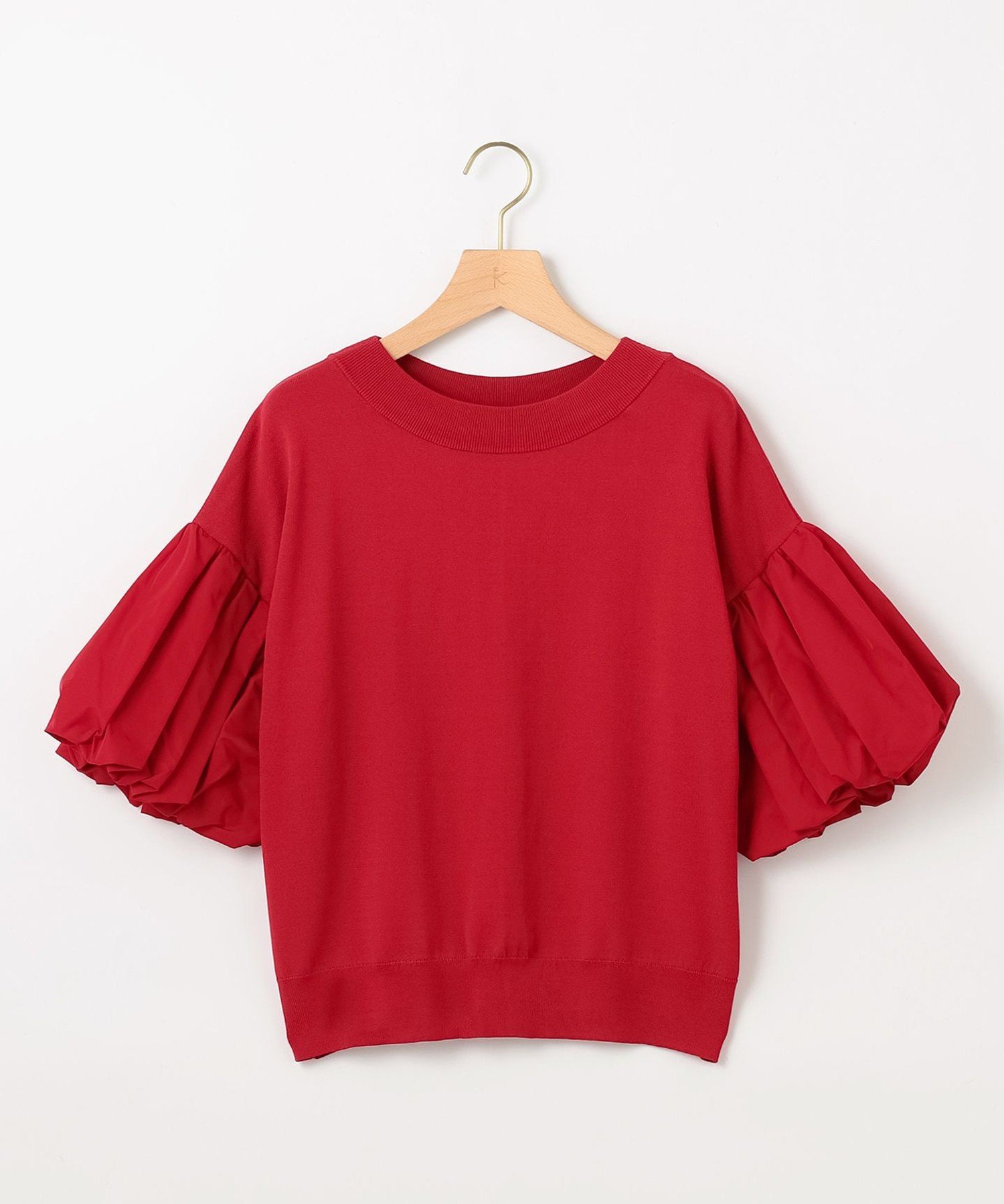 Этот трикотажный пуловер с пышными рукавами выполнен в стиле блузки, что придает ему сдержанную нежность.