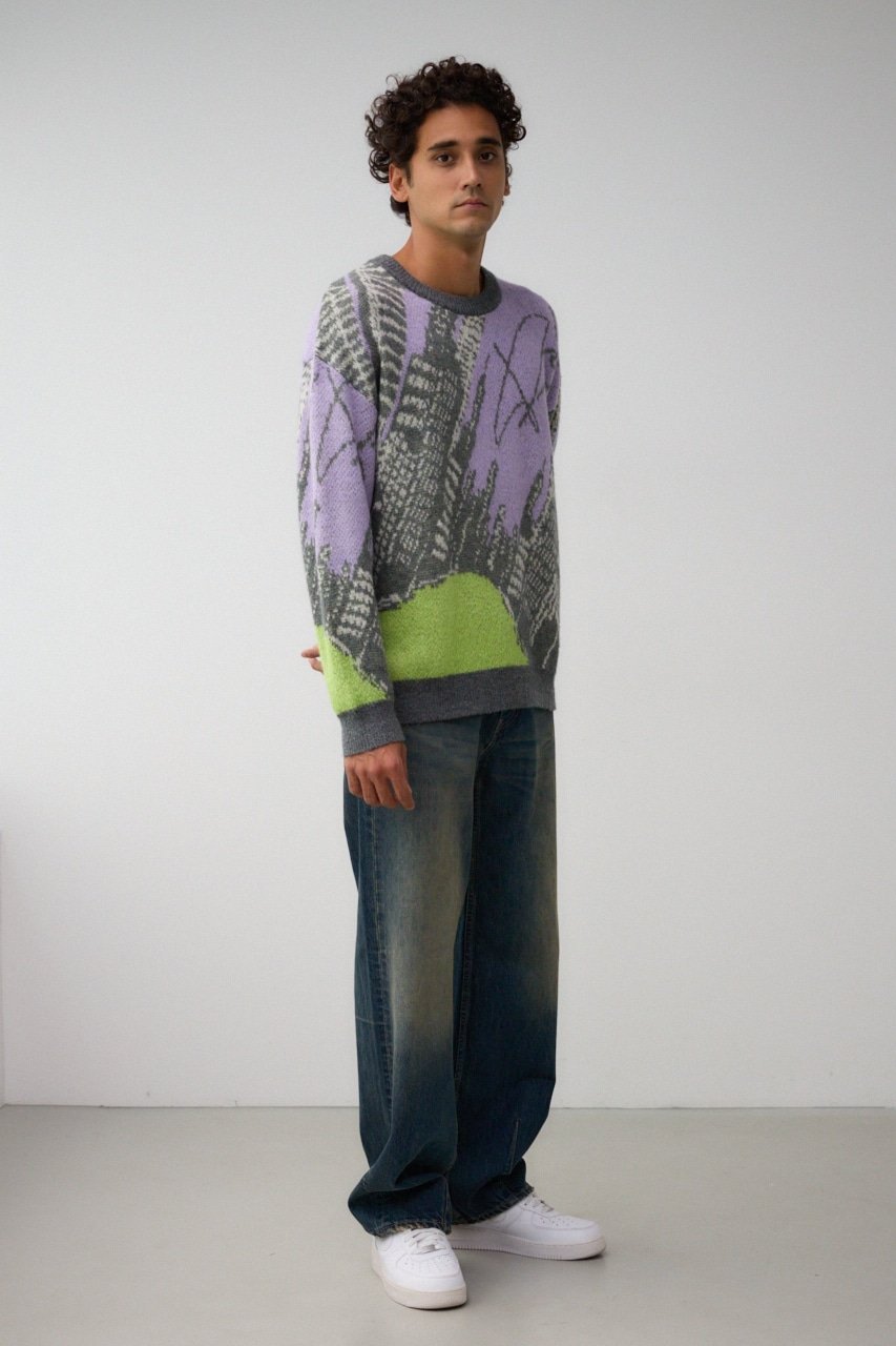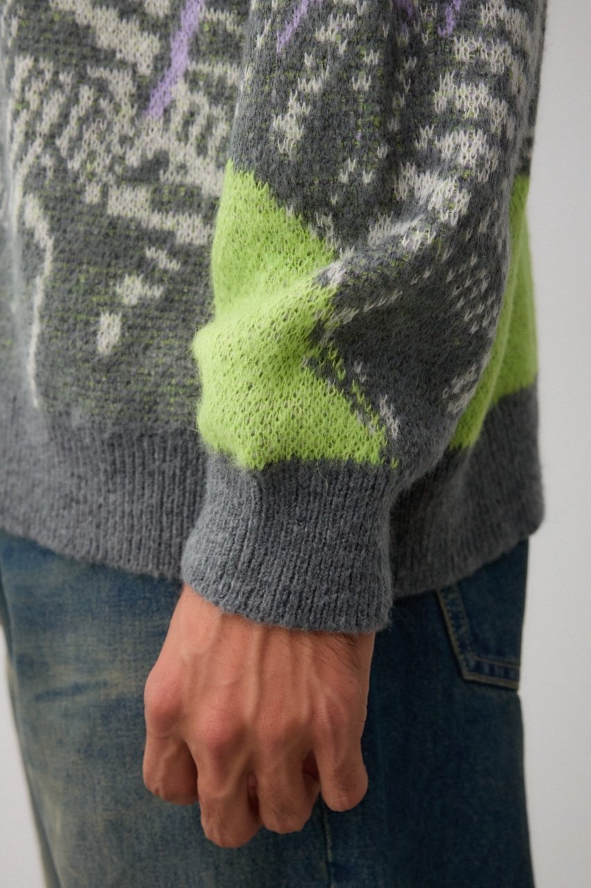 Узор связан жаккардовой вязкой средней плотности, что создает теплый образ.