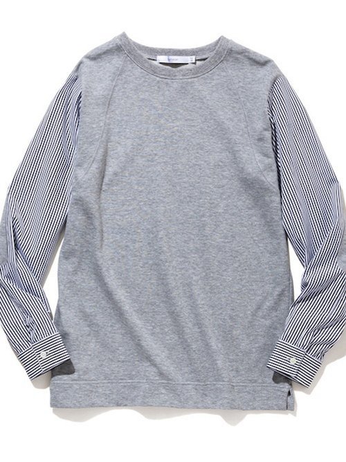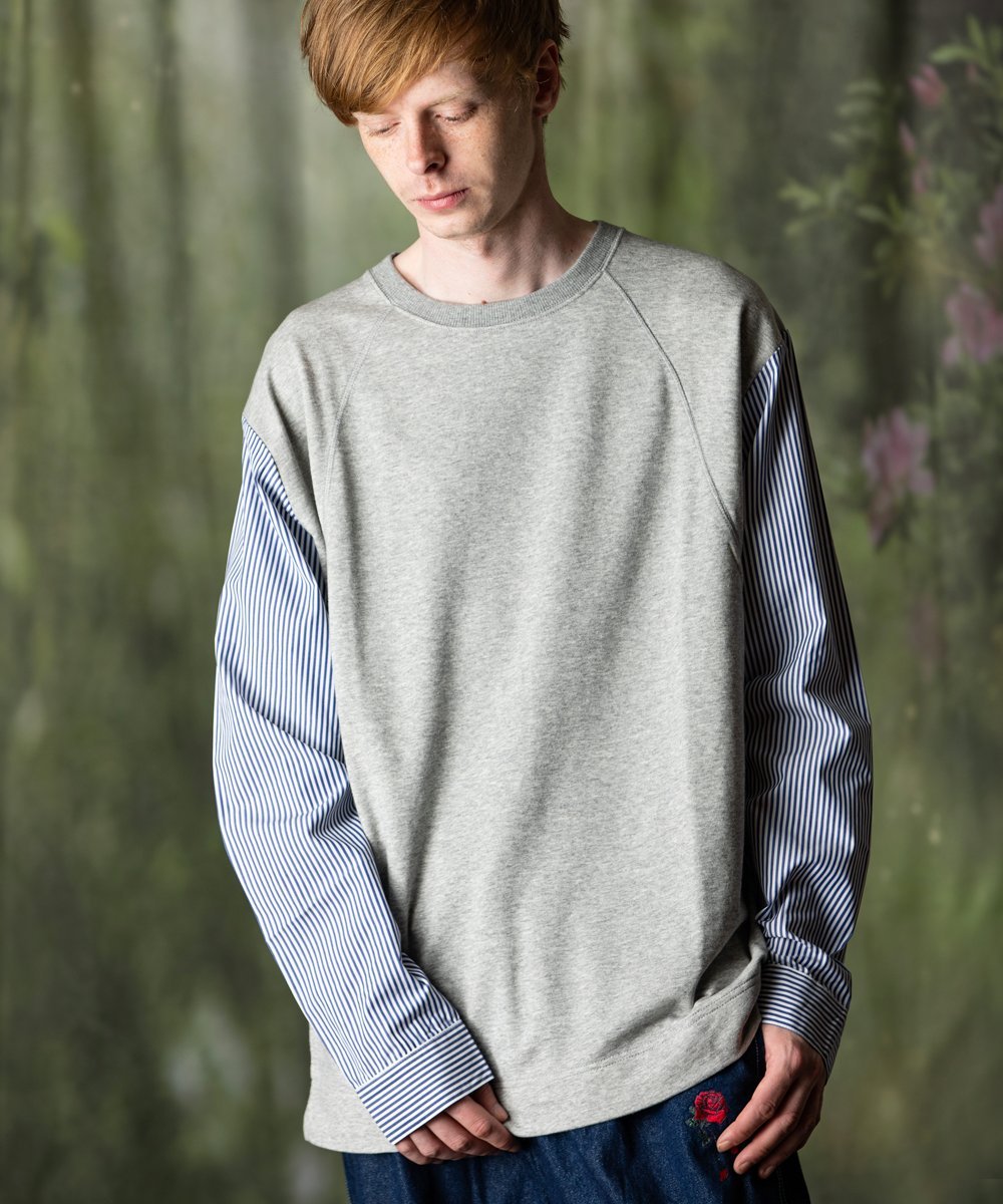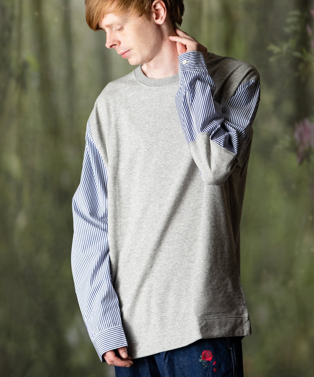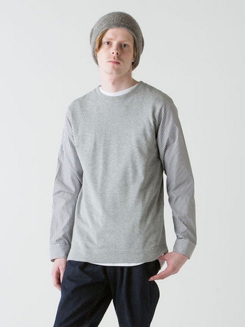Этот сшитый вручную топ сочетает в себе мягкую махровую трикотажную ткань для толстовок с тканым полосатым полотном.