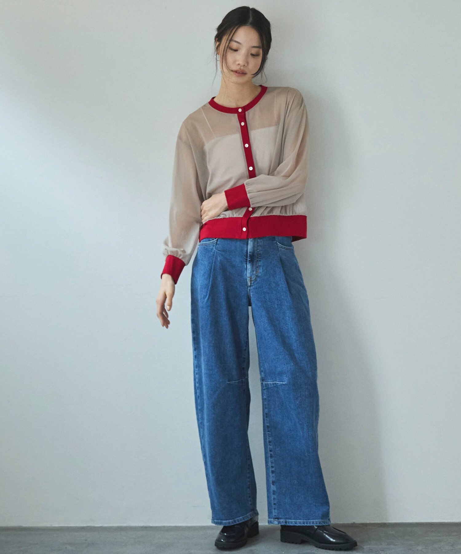 Несмотря на свободный, широкий силуэт, он сужается к низу, придавая изящный вид.