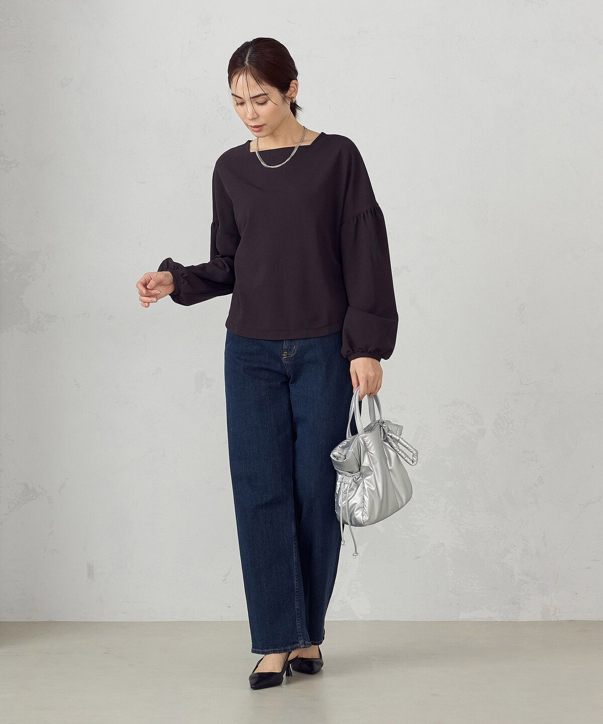 Дизайнерский крой с рукавами-фонариками создает женственный образ.
