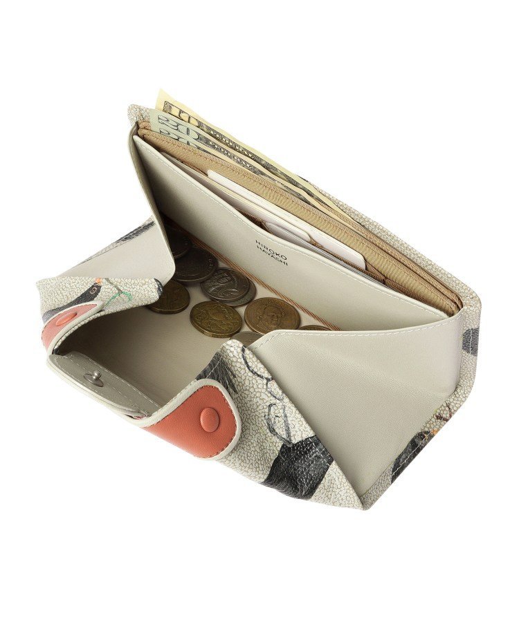 Когда вы расстегиваете кнопку, весь кошелек принимает форму коробки и открывается как большой кошелек для монет.