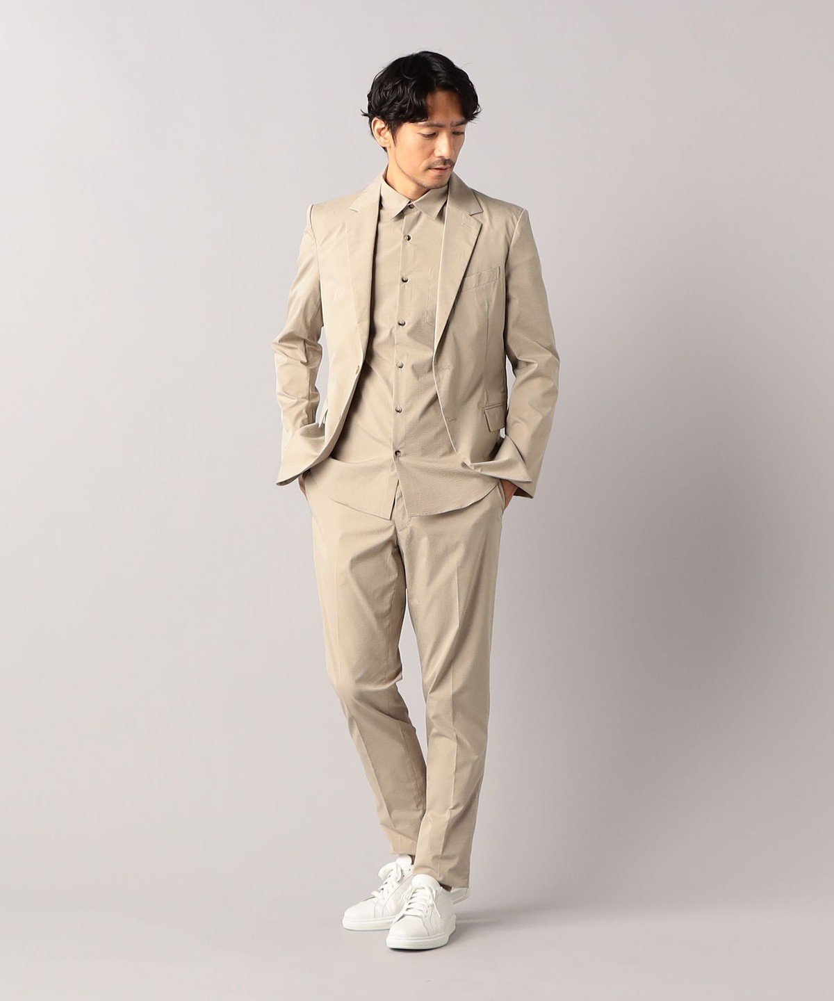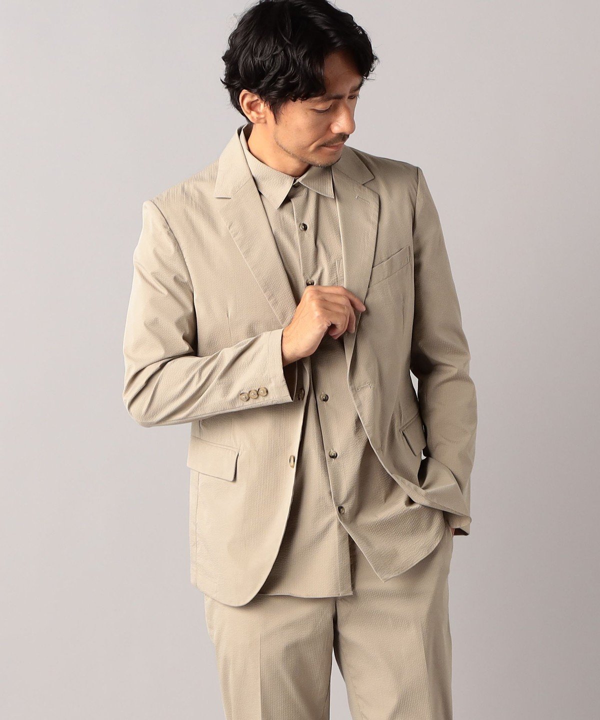 Изготовлен из ткани сирсакер, идеально подходящей для влажного японского лета.