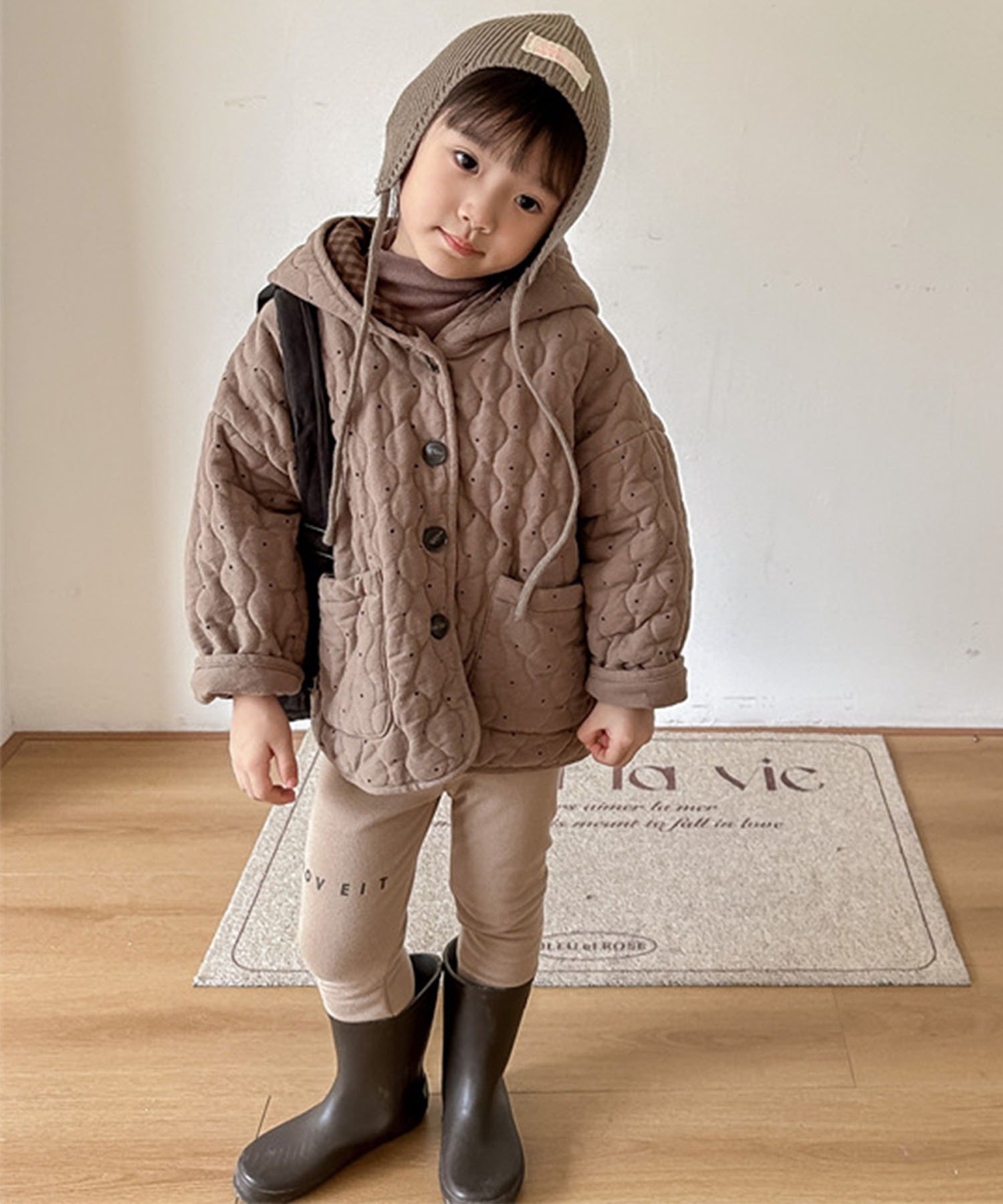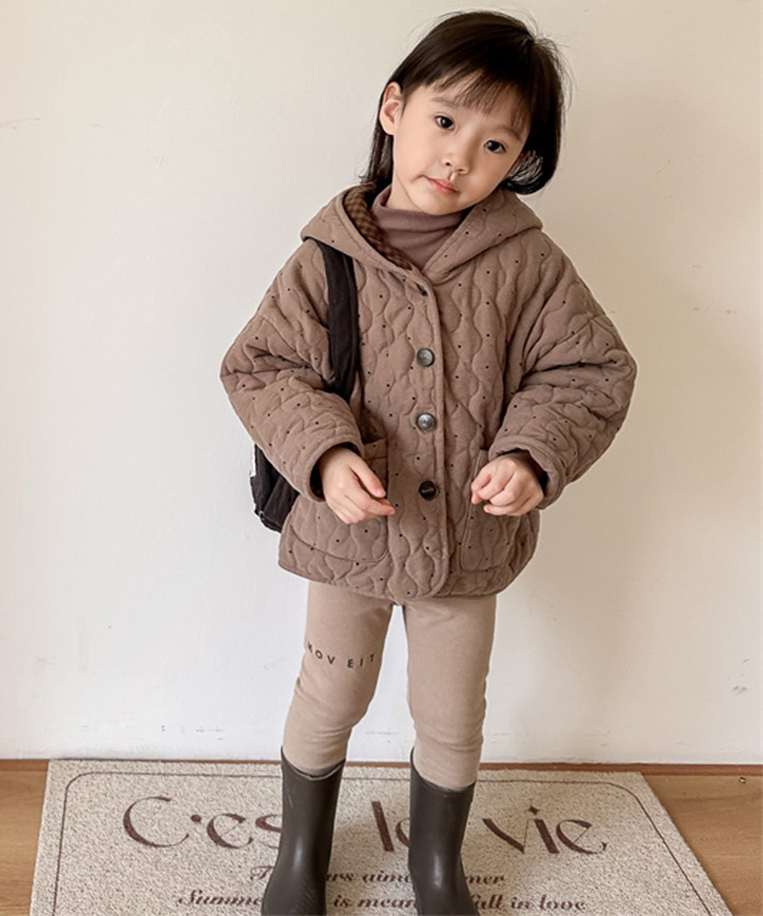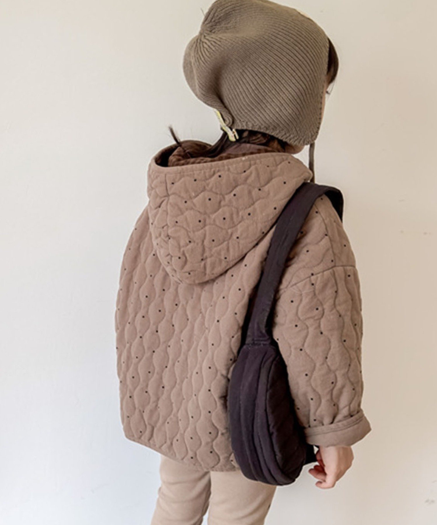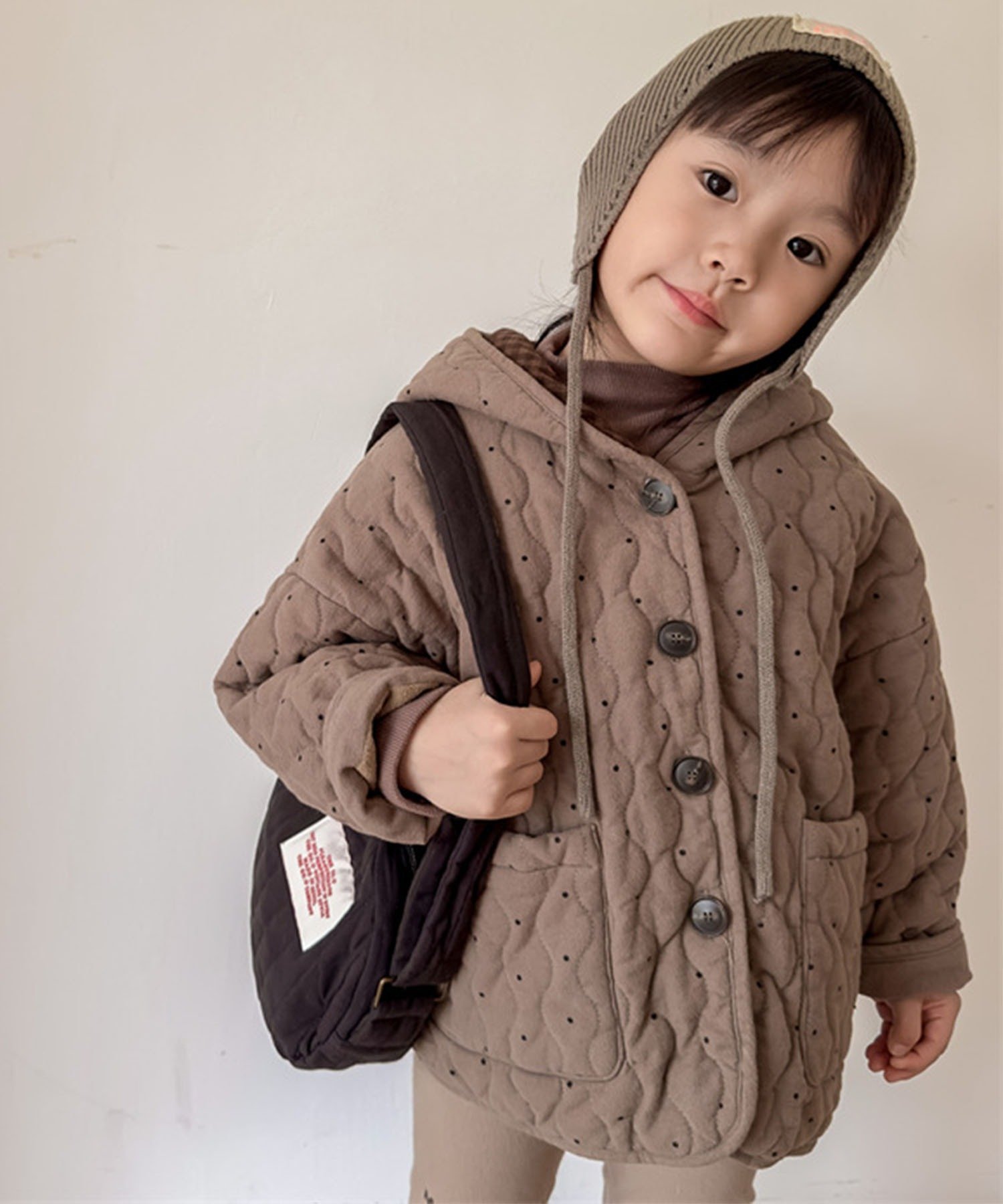 Стеганая куртка с едва заметным узором в горошек, которая станет стильным акцентом. Стежка обеспечивает дополнительное тепло, а плотно прилегающий капюшон идеально подходит для защиты от холода! Подкладка с застежкой-молнией придает ей непринужденный и милый вид. Естественный теплый цвет позволяет легко сочетать ее с другой одеждой. Свободный силуэт позволяет носить ее с теплыми топами, что делает ее универсальной вещью, подходящей для самых разных стилей, и отличным вариантом для осени и зимы.
