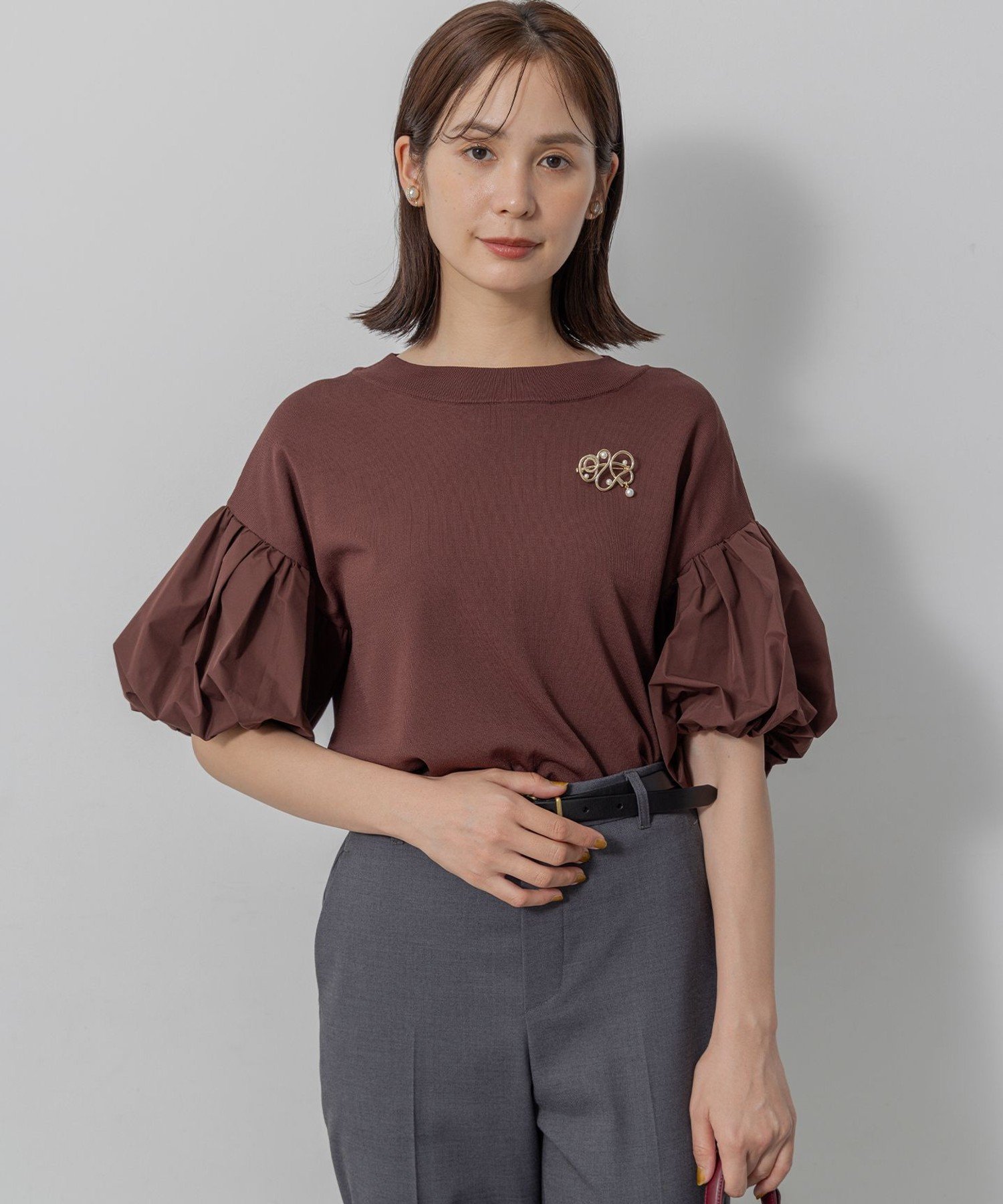 Этот трикотажный пуловер с пышными рукавами выполнен в стиле блузки, что придает ему сдержанную нежность.