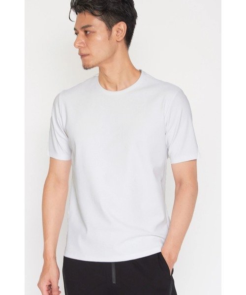 Футболка с круглым вырезом и тонкой текстурой ткани.
