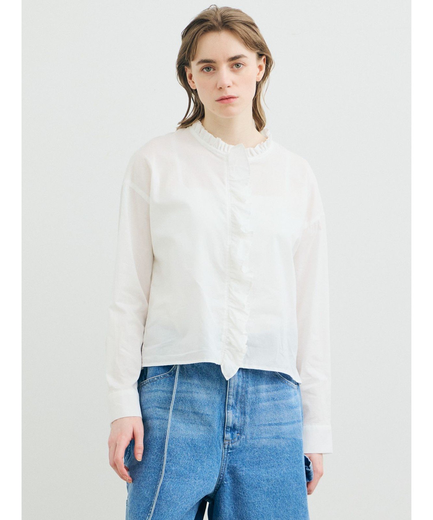 Эта рубашка с воротником-рюшем вдохновлена винтажной французской одеждой. Она выполнена из легкого, полупрозрачного материала. Сочетайте ее с повседневными брюками или деловой одеждой для создания модного и стильного образа. Скрытые пуговицы создают изысканный дизайн спереди. Идеально подходит для многослойных образов, а также станет отличным акцентным элементом гардероба ранней весной.