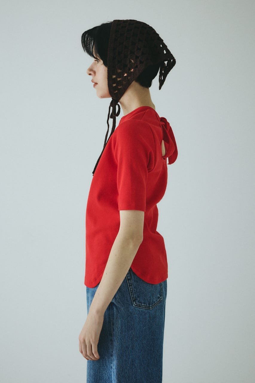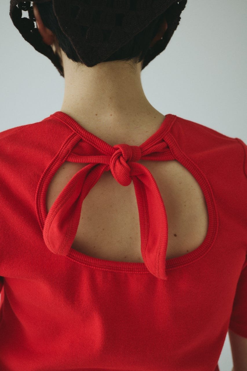 Топ с вырезом на спине и лентой.