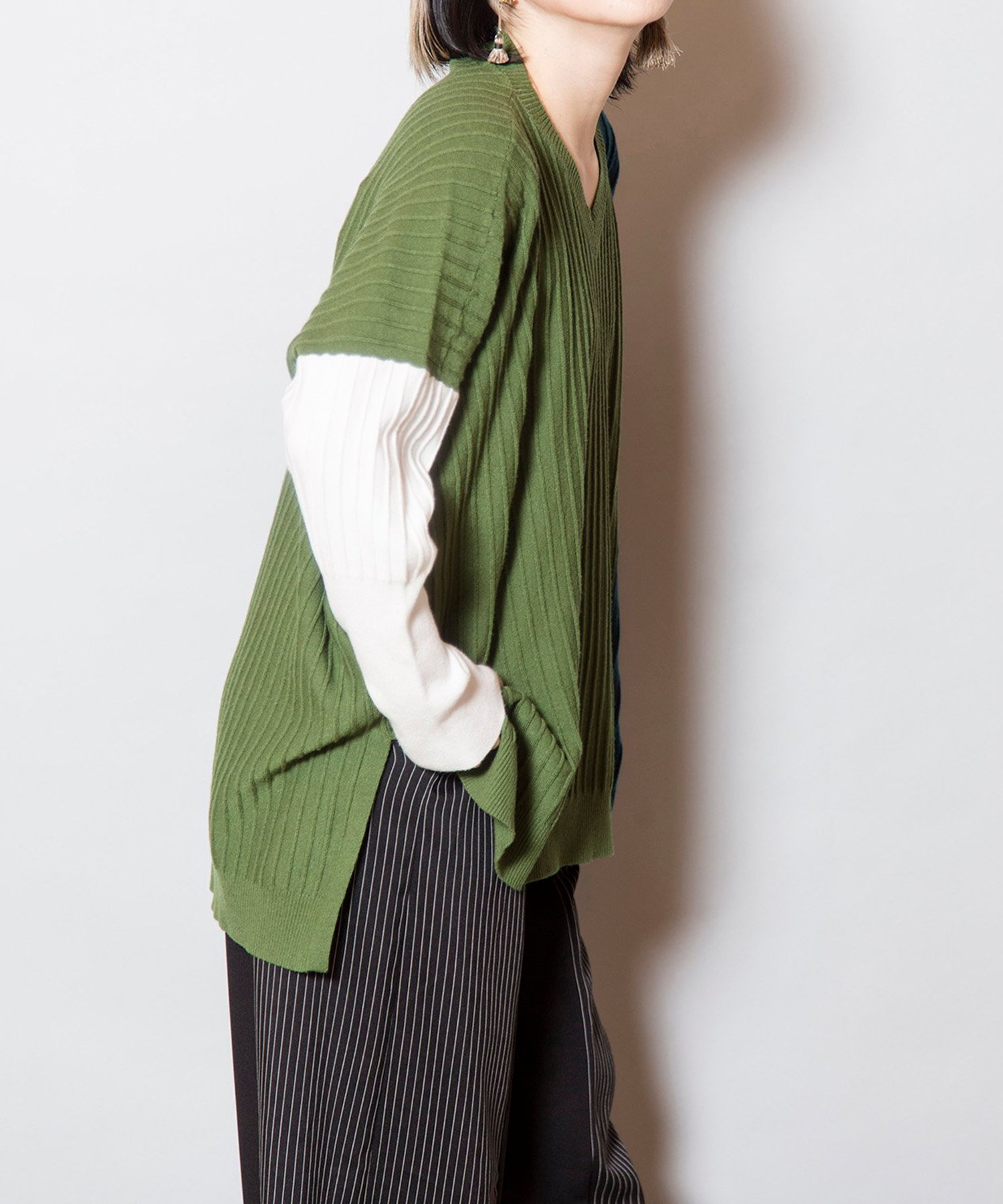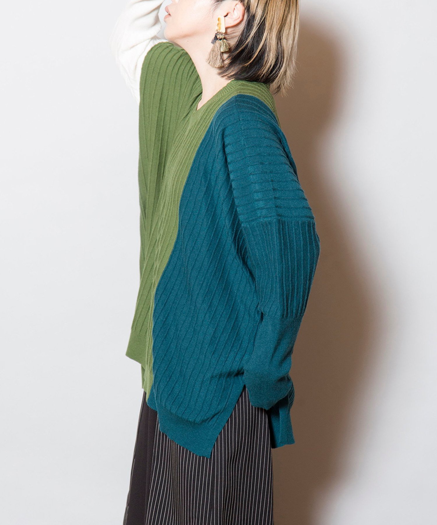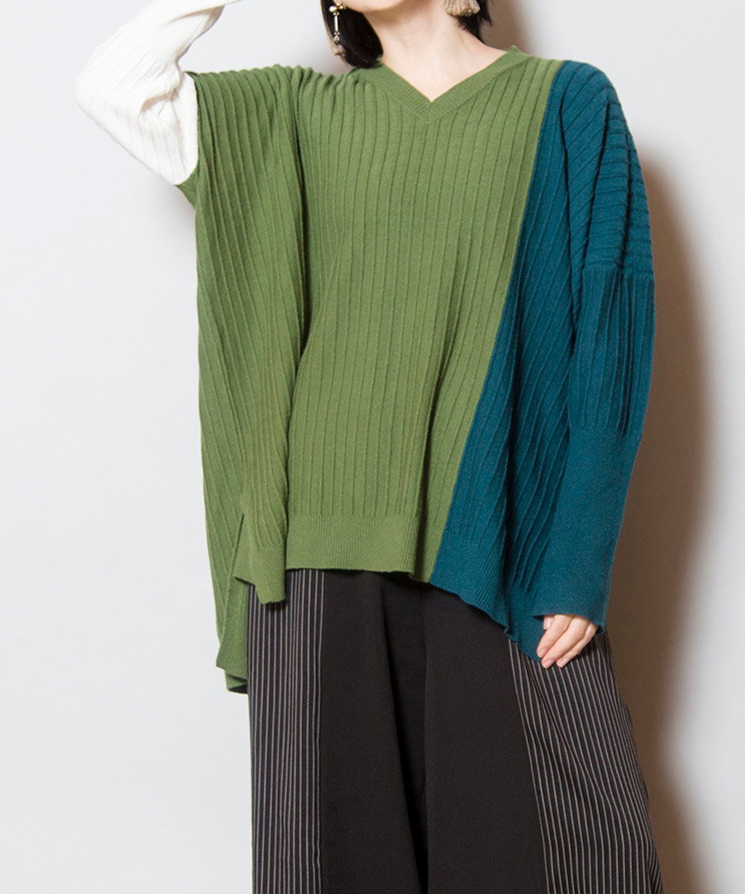 Трикотаж с расслабленным силуэтом и игривой цветовой гаммой, который станет ярким акцентом в вашем гардеробе. Трикотаж с защипами создает эффект стройности, а V-образный вырез также способствует стройности.