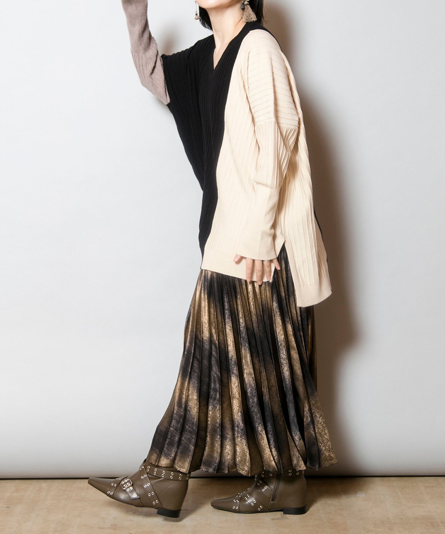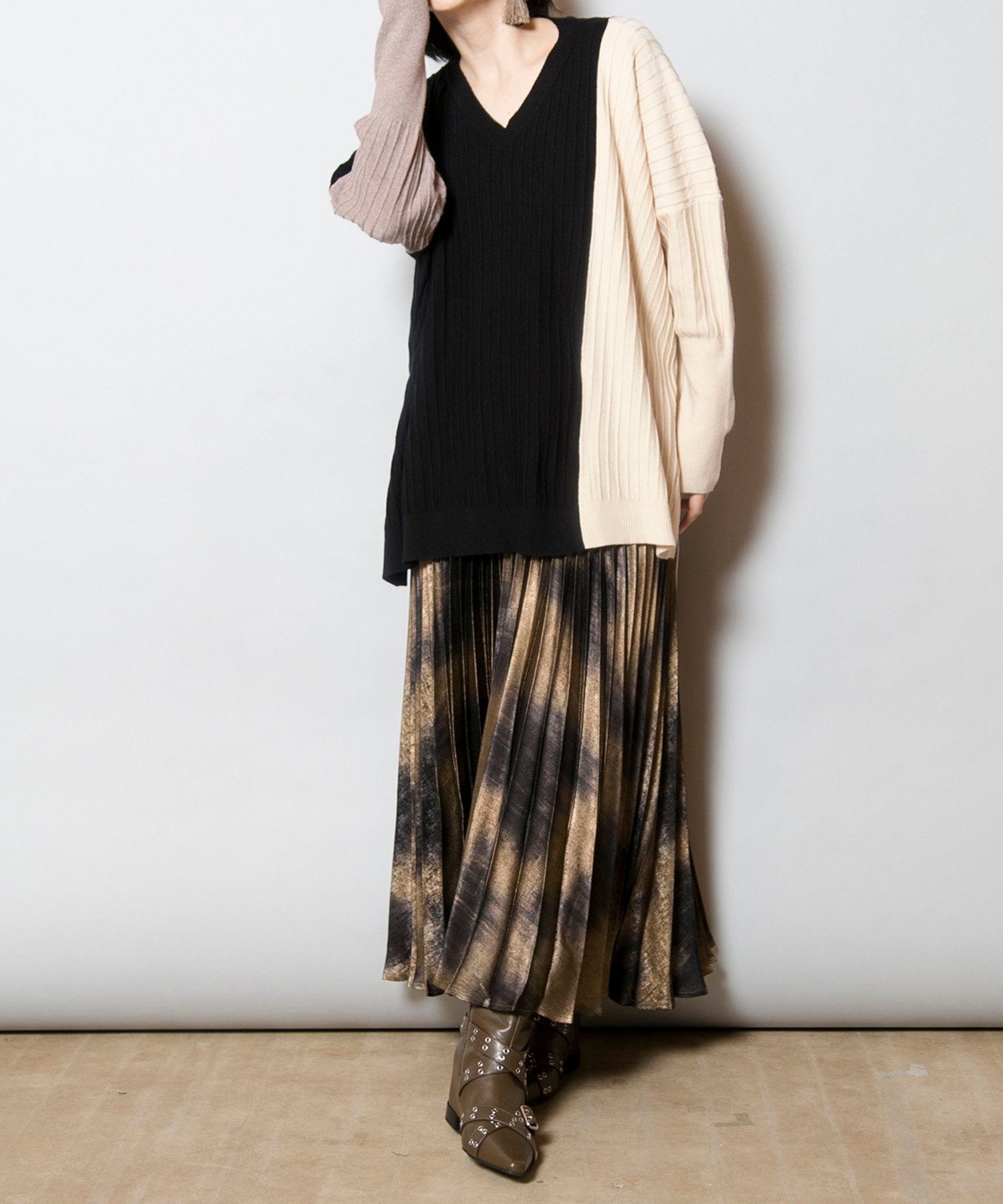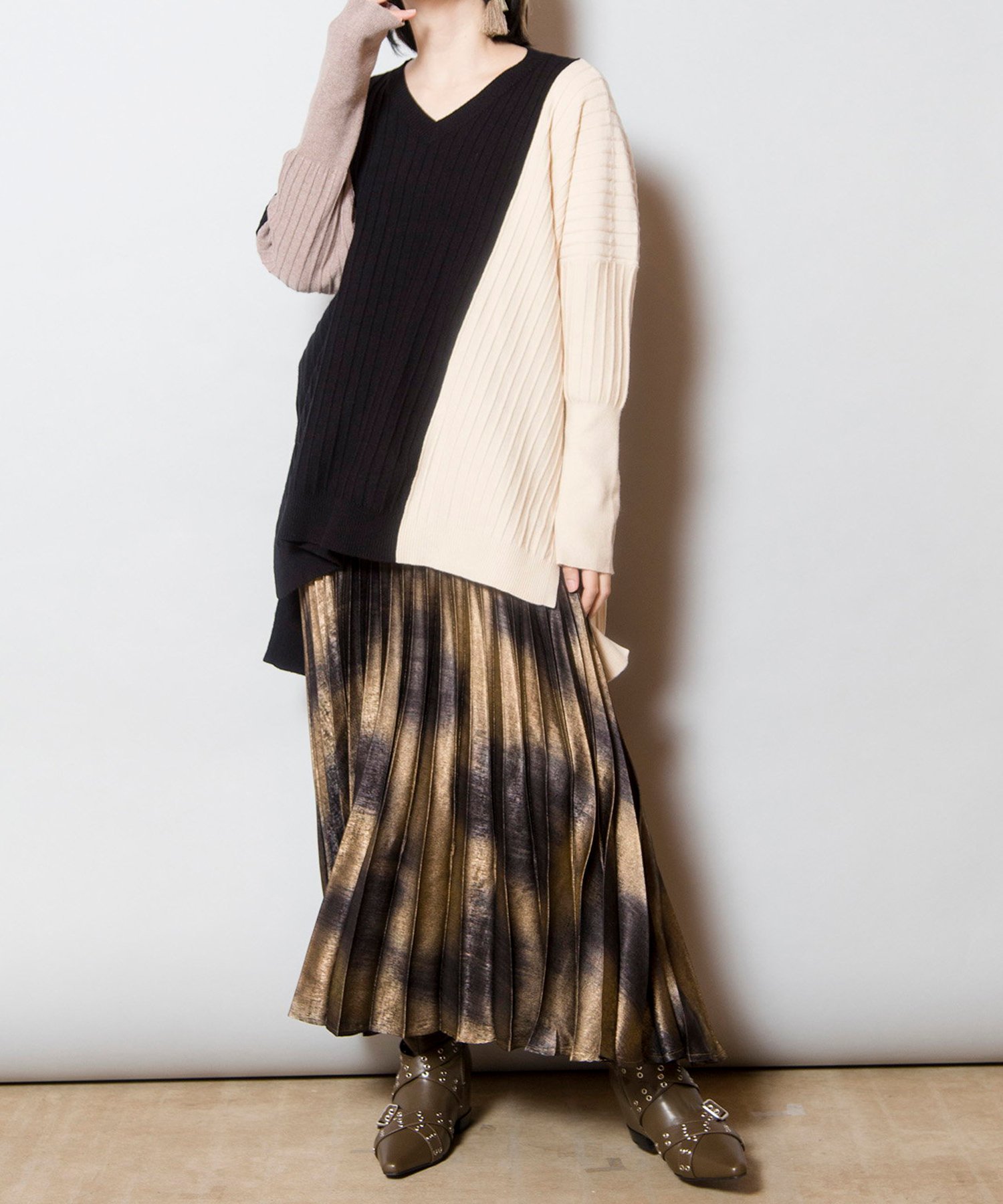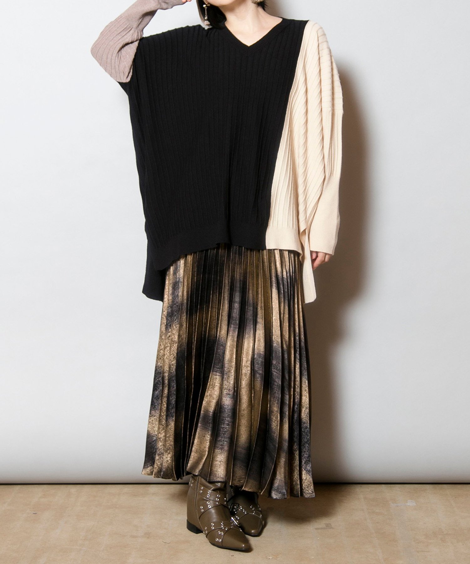 Трикотаж с расслабленным силуэтом и игривой цветовой гаммой, который станет ярким акцентом в вашем гардеробе. Трикотаж с защипами создает эффект стройности, а V-образный вырез также способствует стройности.