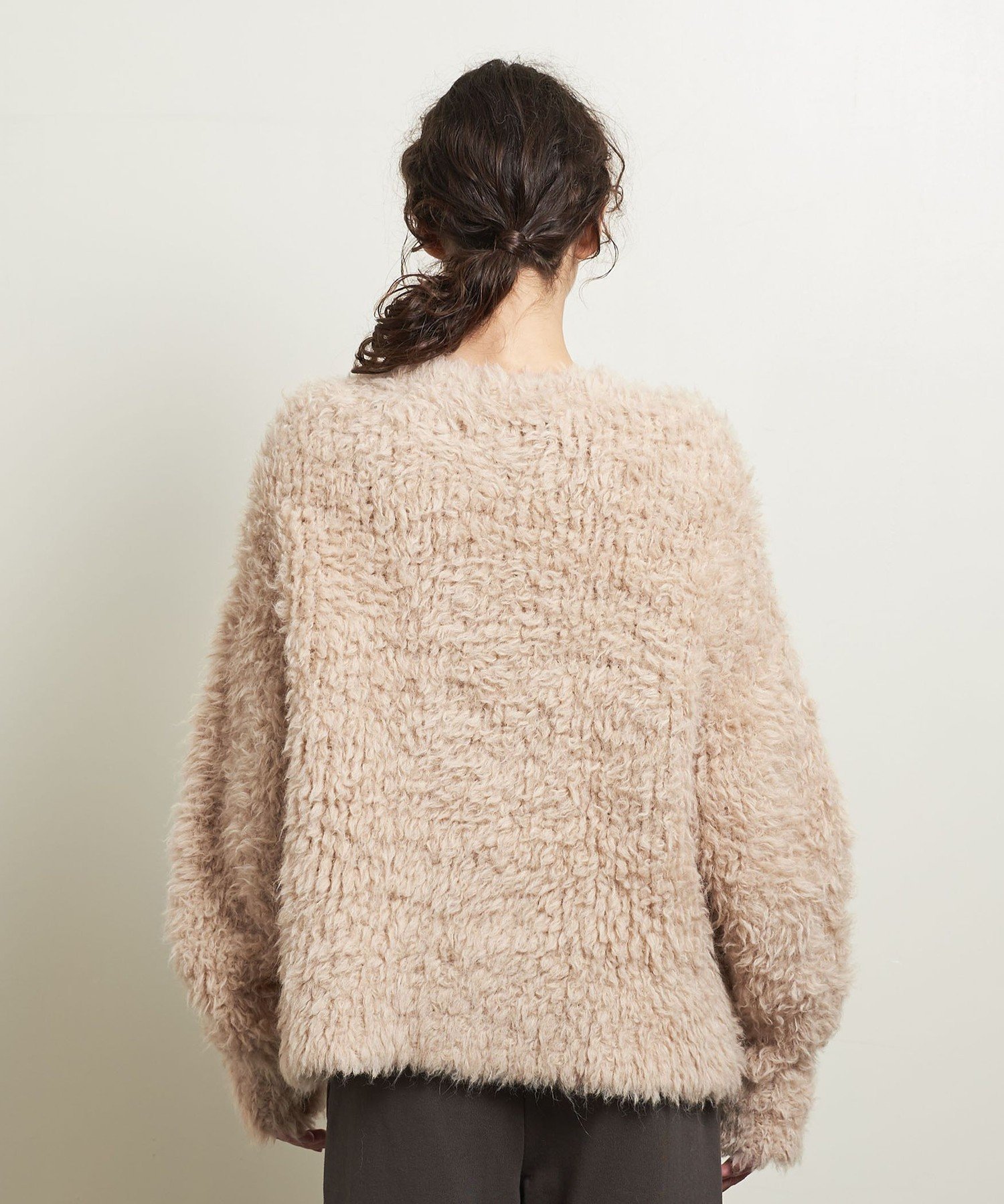 Связанный из пушистой пряжи из смеси альпаки, он имеет мягкую, пушистую текстуру, приятную на ощупь.