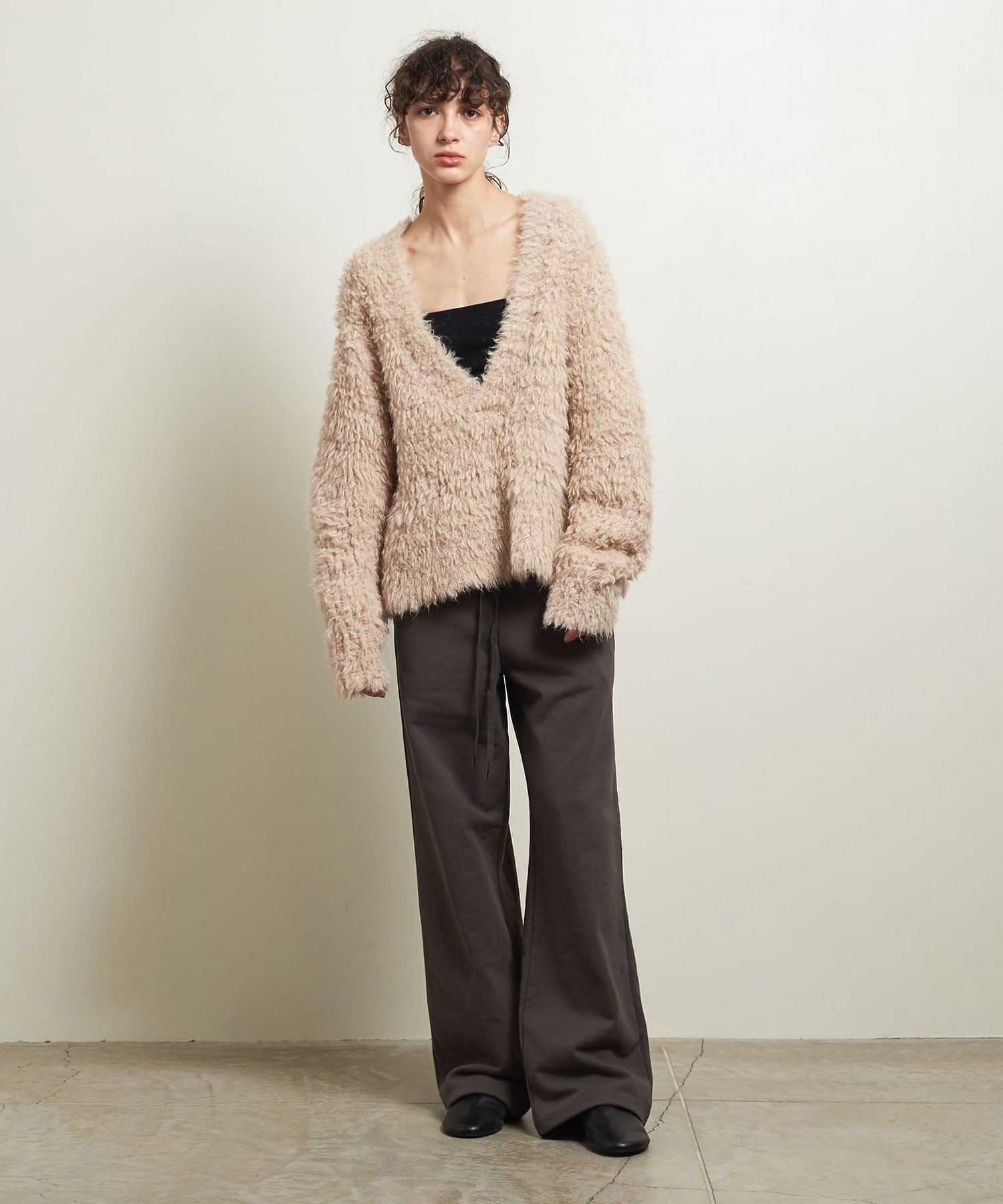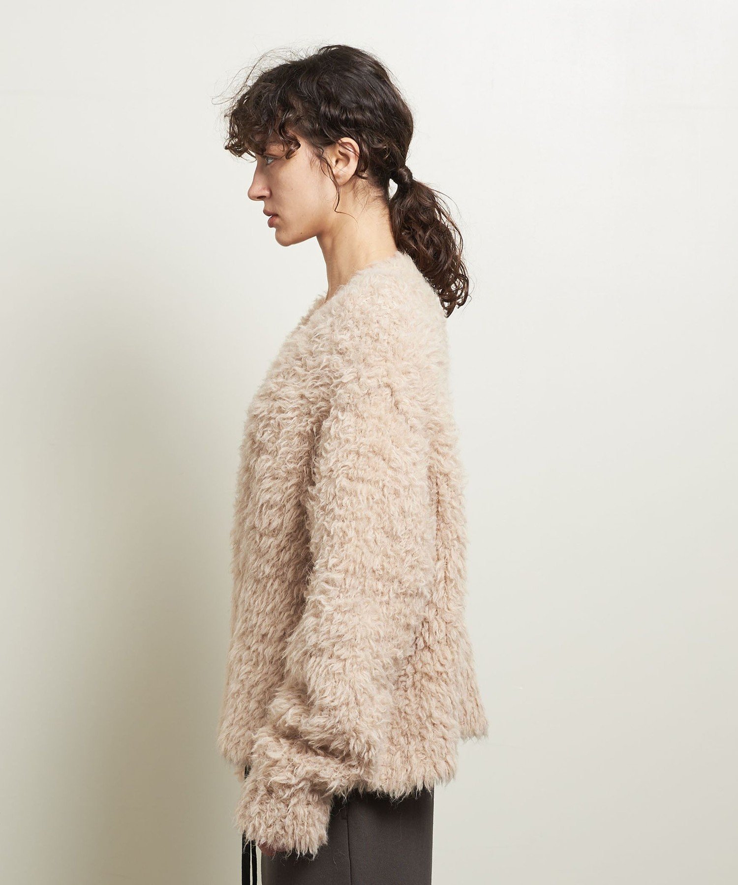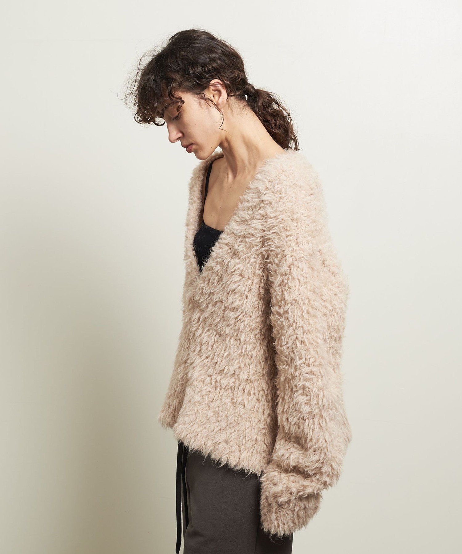 Этот объемный свитер с V-образным вырезом, имитирующим мех, отличается мягким и пушистым видом.