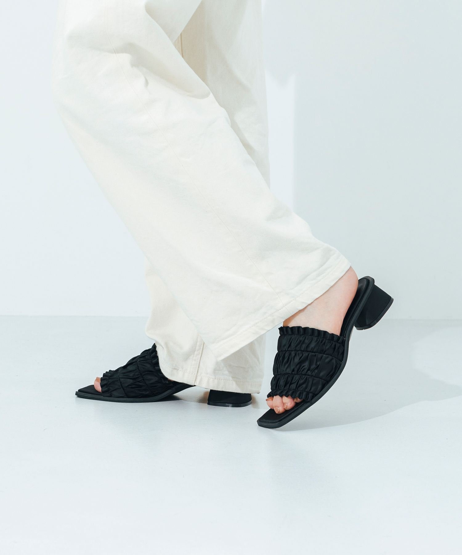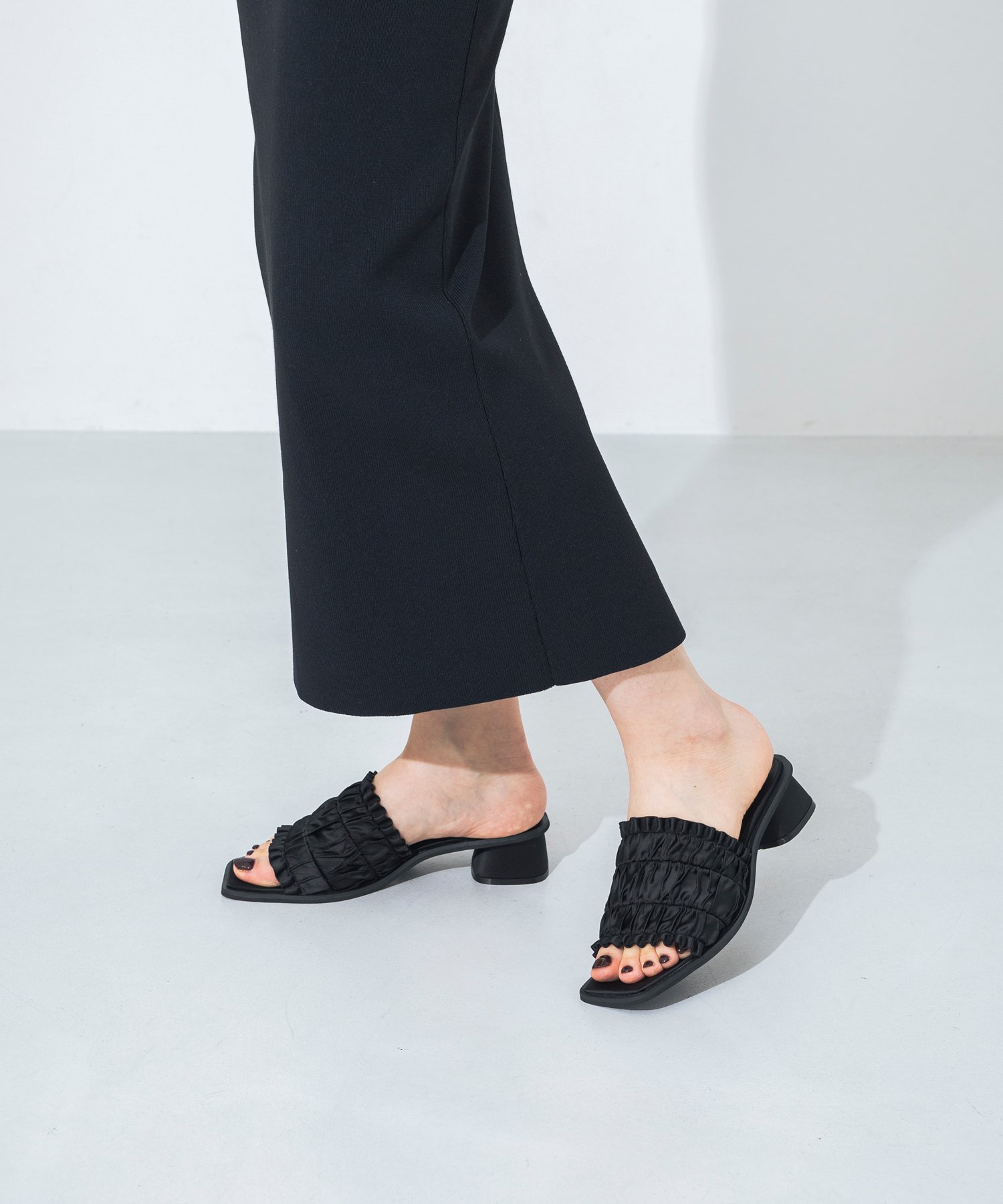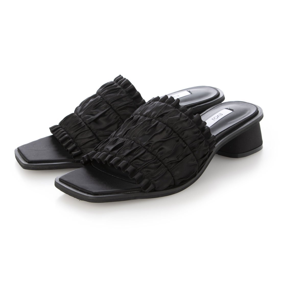 ※Обратите внимание, что изображения товаров являются образцами, и такие характеристики, как цвет и размер, могут быть изменены. EVOL Instagram (evol_official0) Женские сандалии и мюли, низкий каблук, квадратный носок, с оборками, со сборками, атласные, для повседневной и простой одежды, мягкие, плюшевые, визуально удлиняющие ноги, стильные, элегантные, изысканные, женственные, девичьи, для свиданий, прогулок, отдыха, больших размеров, LL, 25 см, 25,5 см
