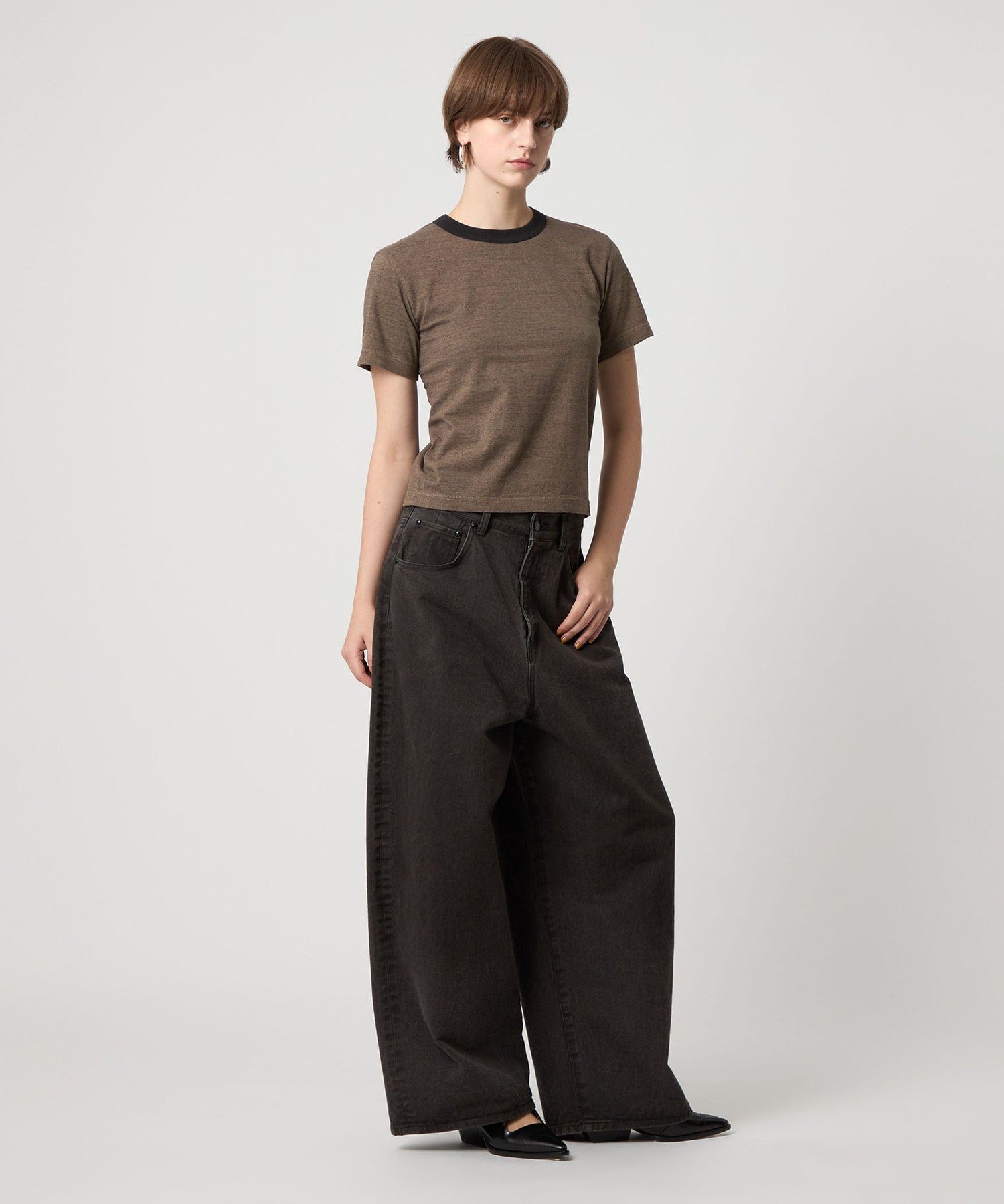 Минималистичная футболка-клеш без боковых швов.