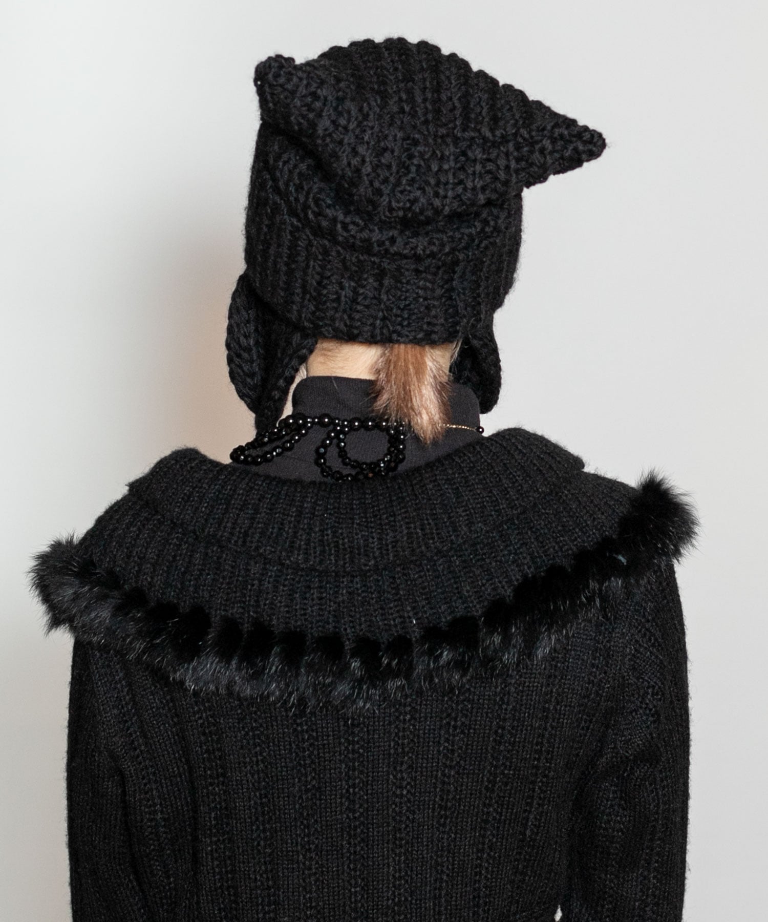 Милый силуэт с кошачьими ушками, прикрепленными к вязаному полотну. Легко вписывается в повседневный гардероб, это незаменимая вещь для любителей кошек.