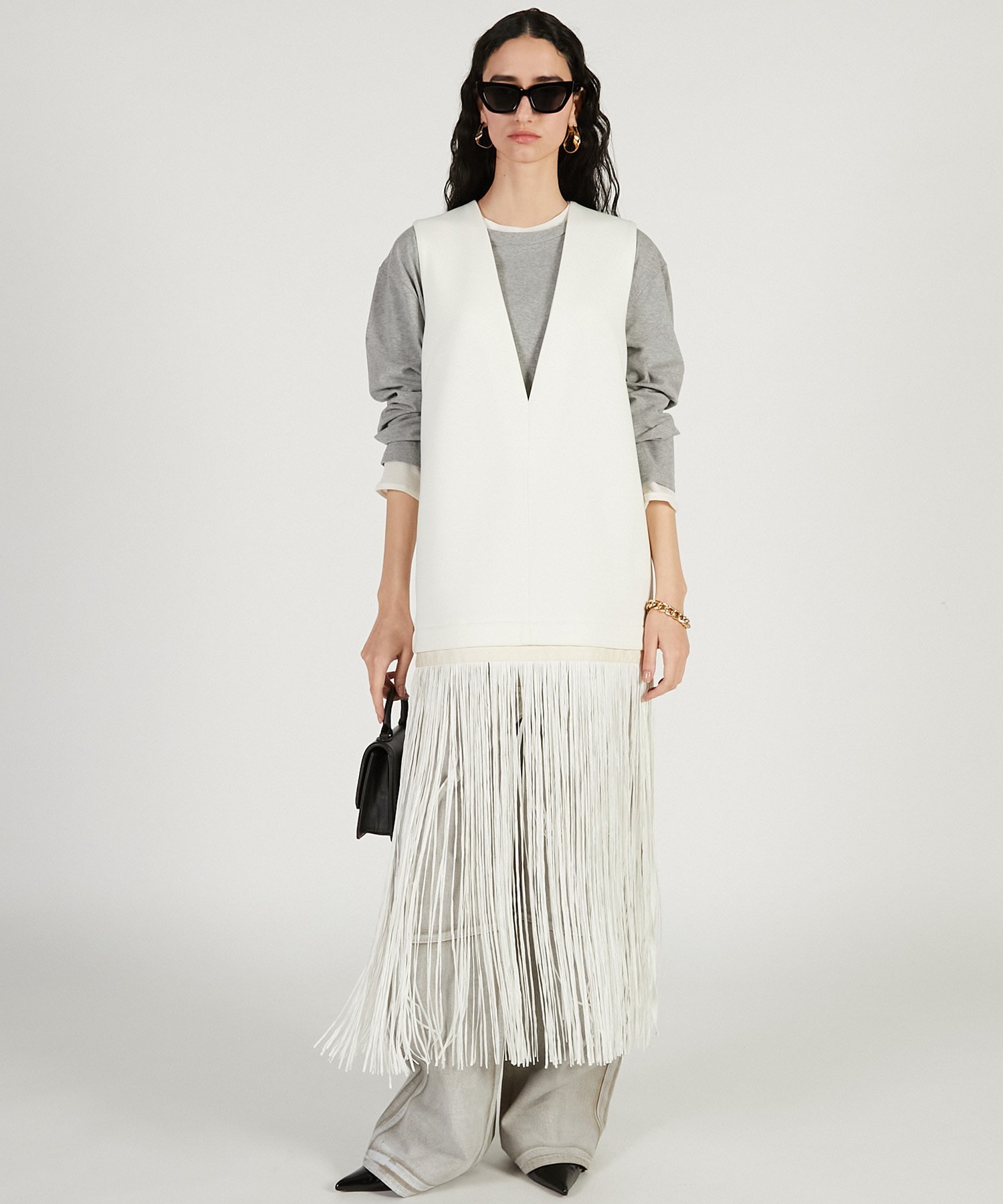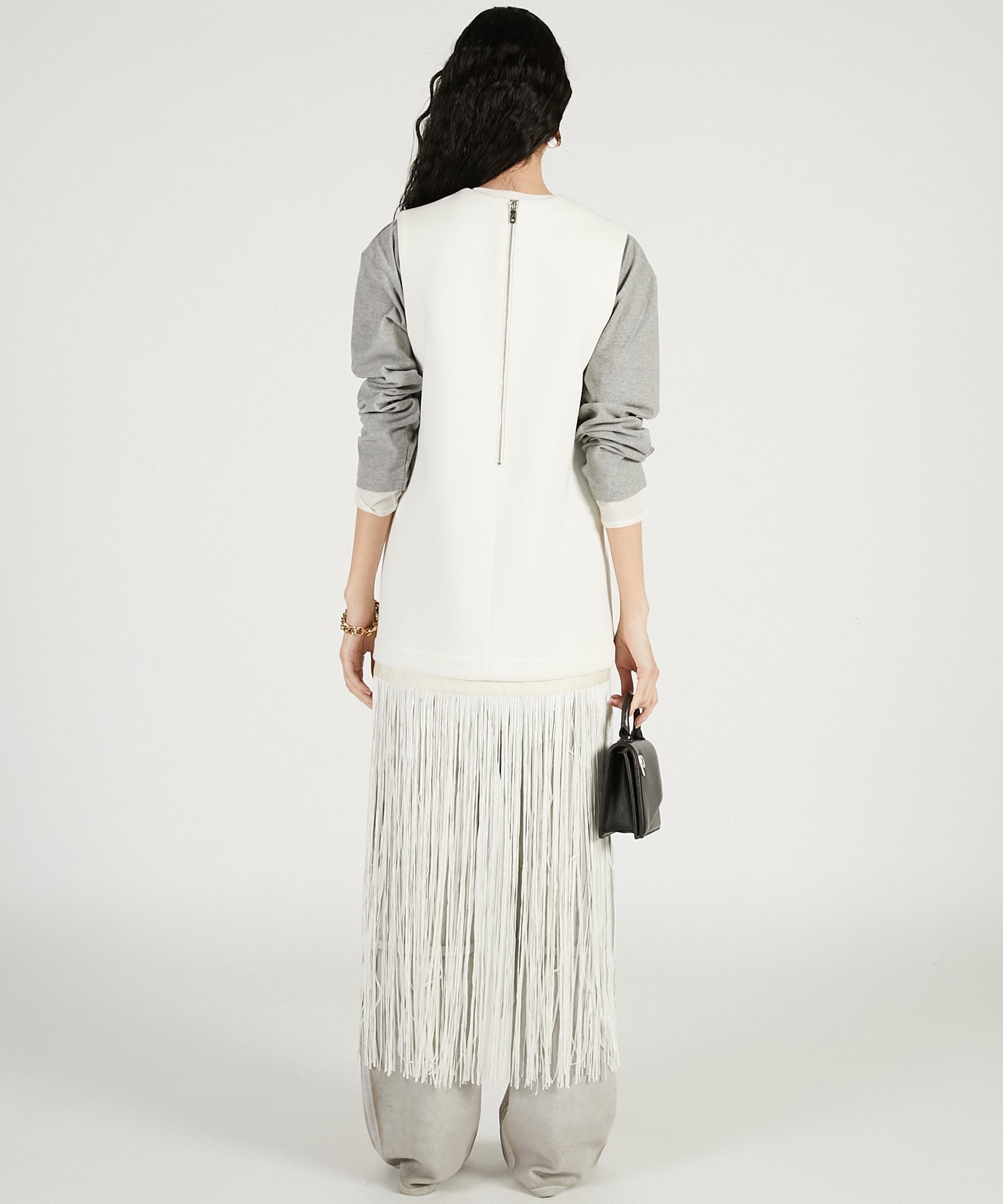 Бахрома по низу съемная, что позволяет обернуть ее вокруг брюк или других вещей, предоставляя широкий спектр вариантов стилизации.