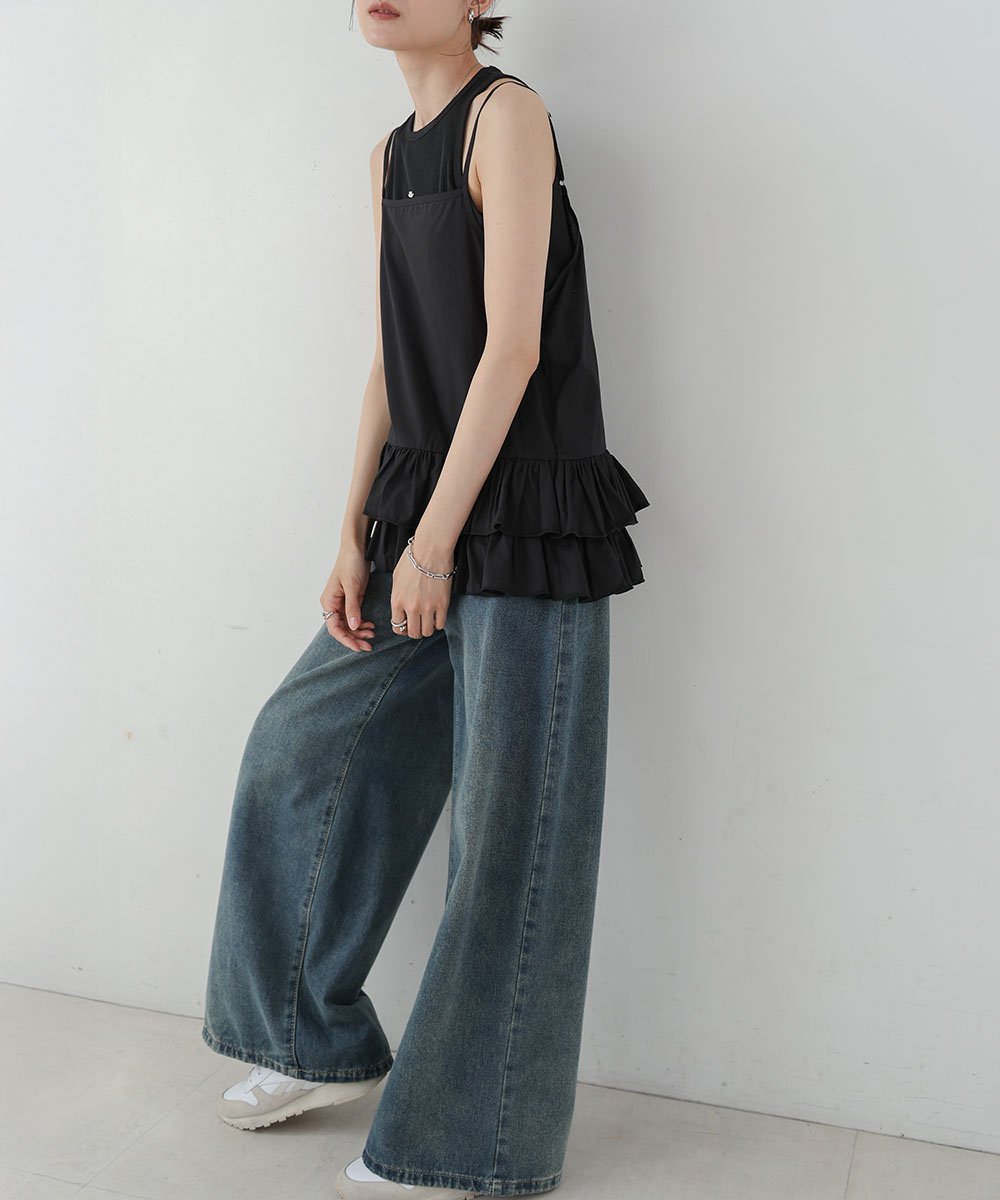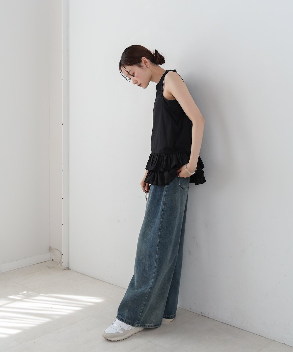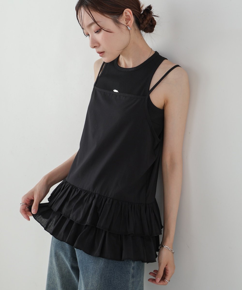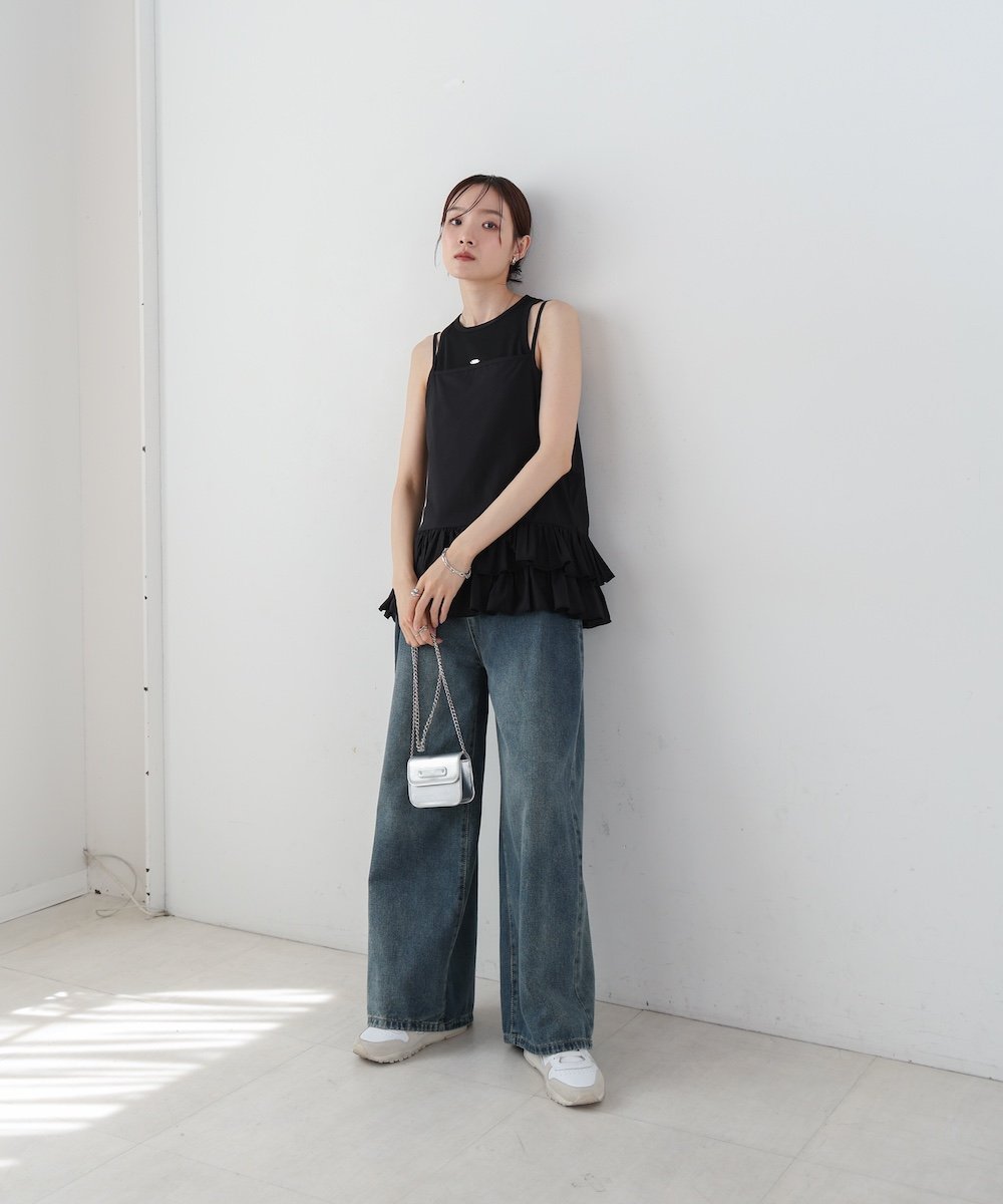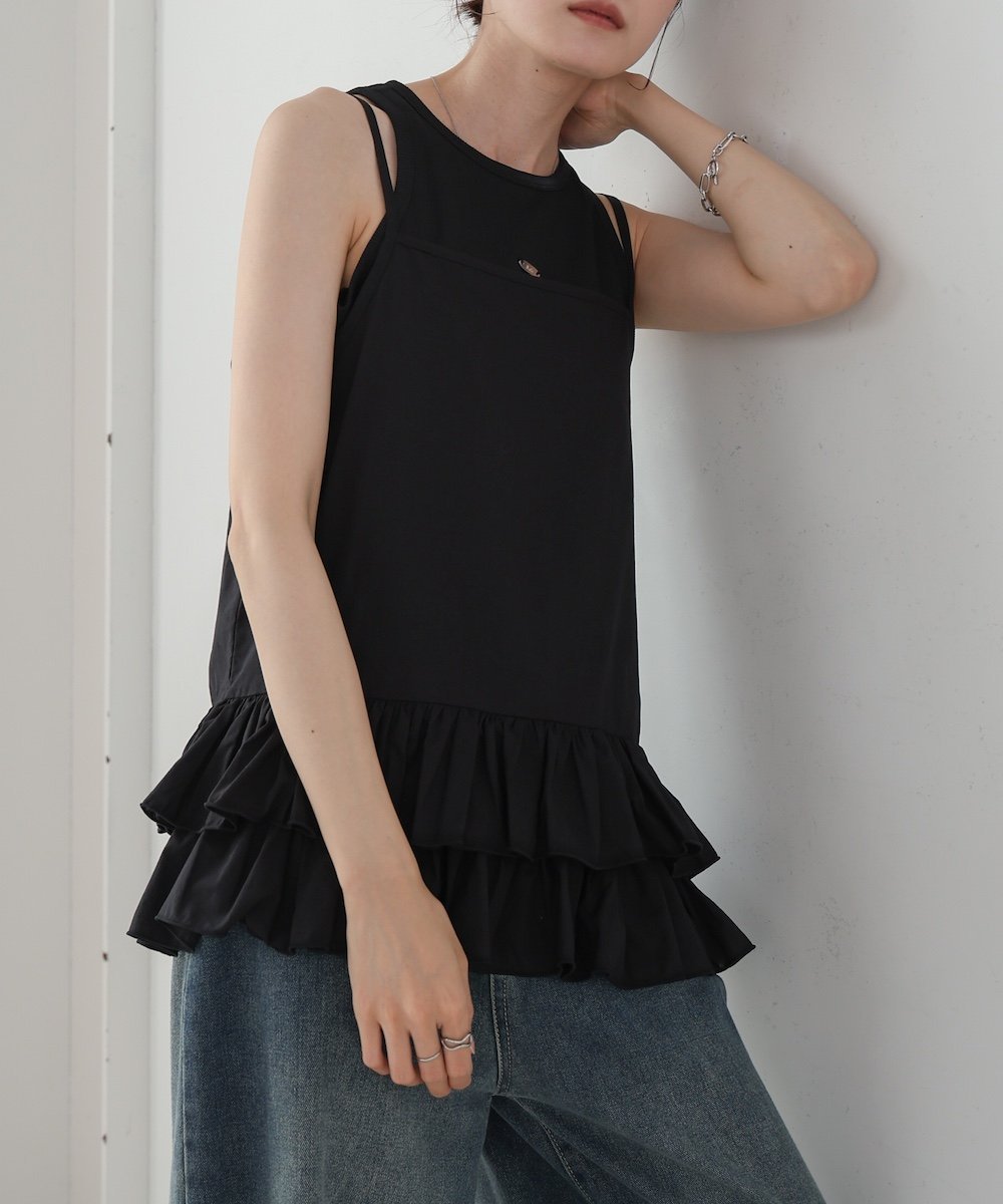 POINTМилый топ-майка с рюшами! Тонкая и мягкая ткань идеально подходит для многослойных образов. При ношении рюши также прикрывают талию.