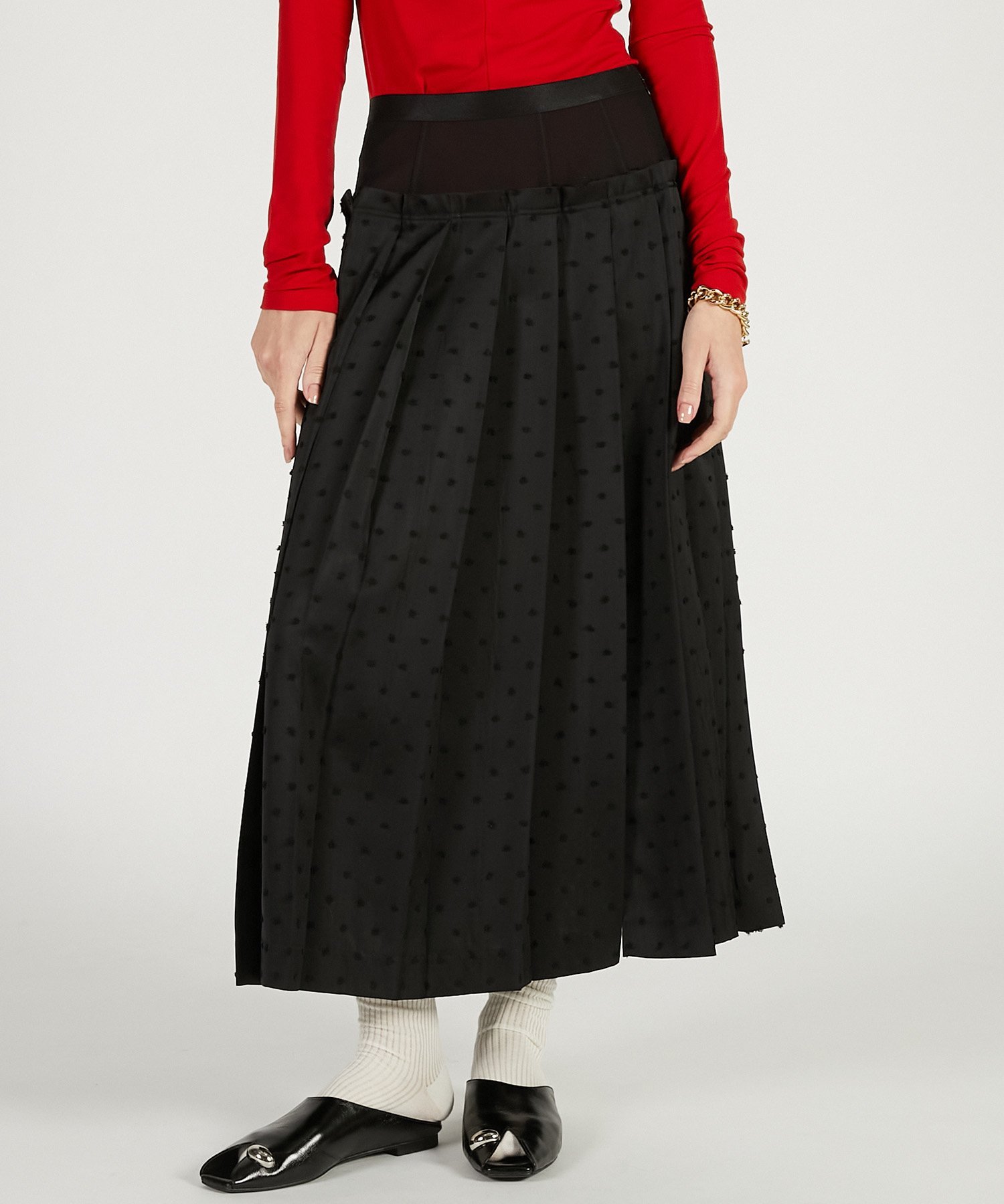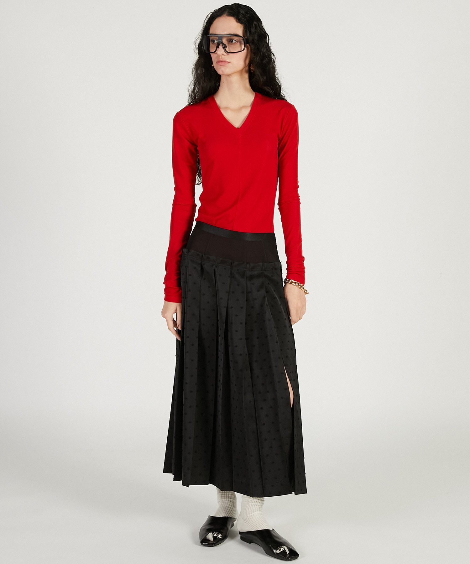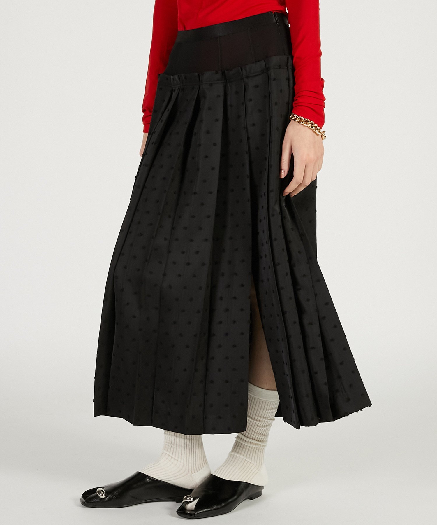 Игривая плиссированная юбка с эффектным разрезом в качестве центрального элемента.
