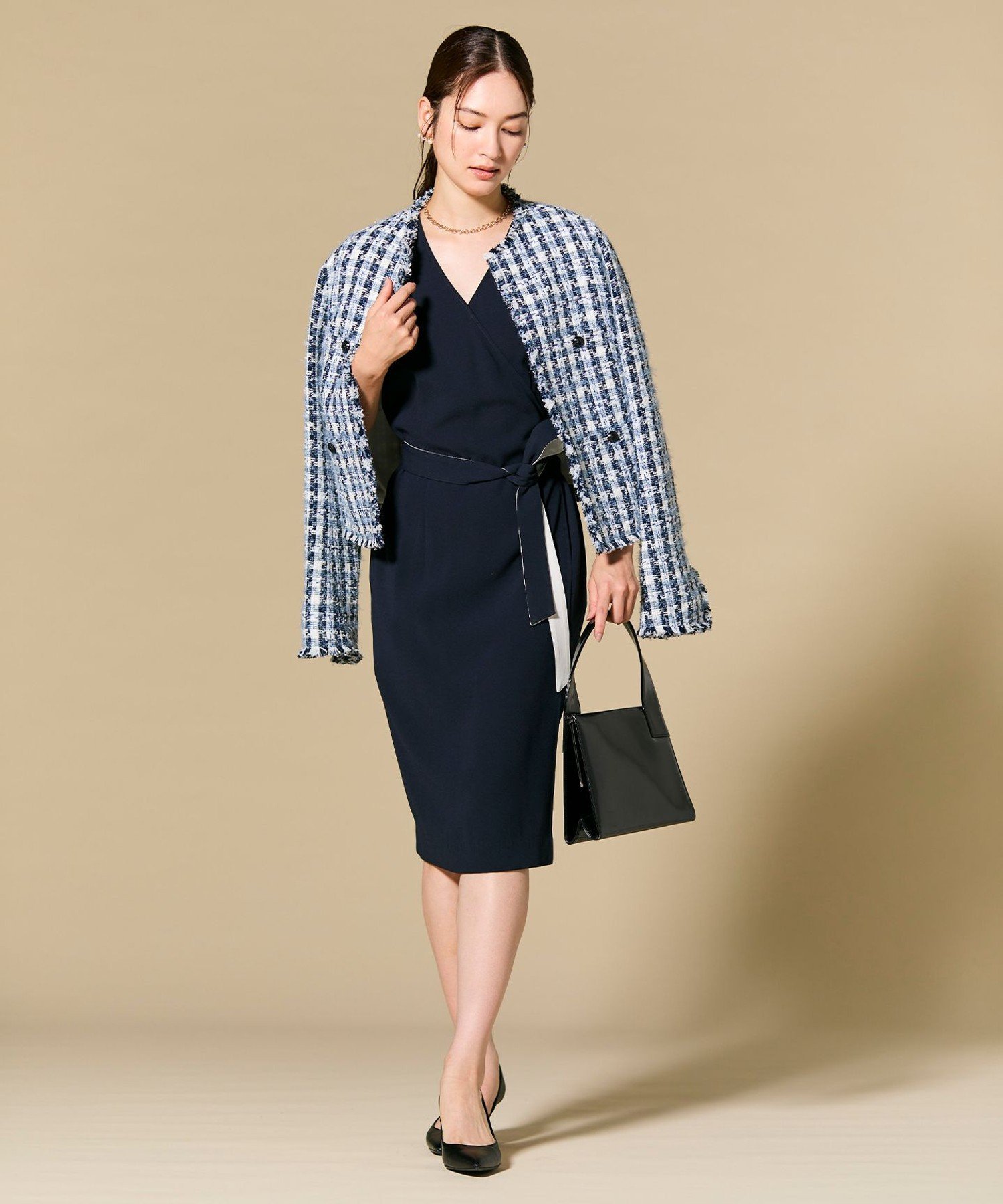 Пояс на талии сочетается по цветовой гамме с жакетом из того же материала, создавая гармоничный образ. Доступные в трех основных цветах: телесном, светло-сером и темно-синем, эти универсальные вещи идеально подходят для самых разных случаев, от офиса до выпускных и вечеринок, а также для повседневного шика. Благодаря своему вневременному дизайну и высококачественному материалу, это платье будет радовать вас долгие годы.