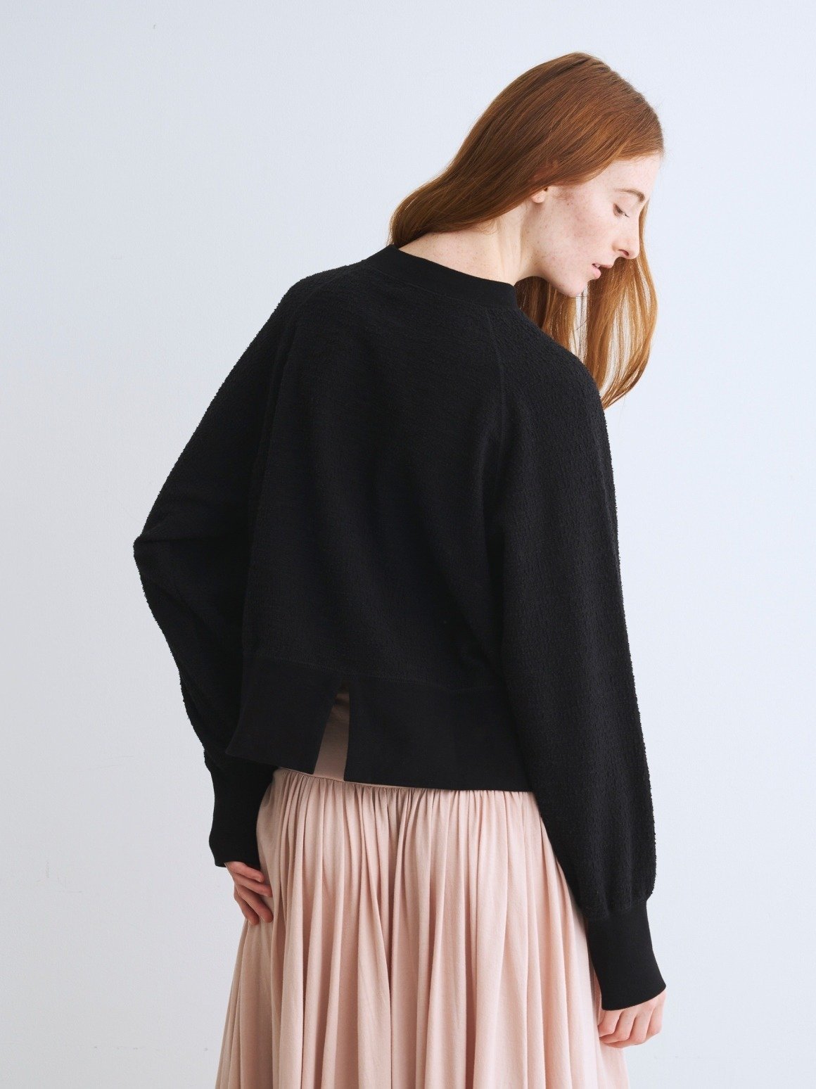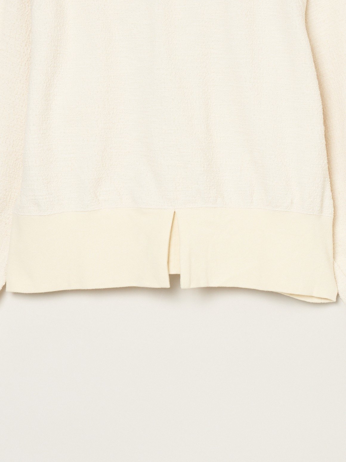 Длинный ребристый низ и разрез сзади — тонкие отличительные черты. Также доступна толстовка на молнии из того же материала.
