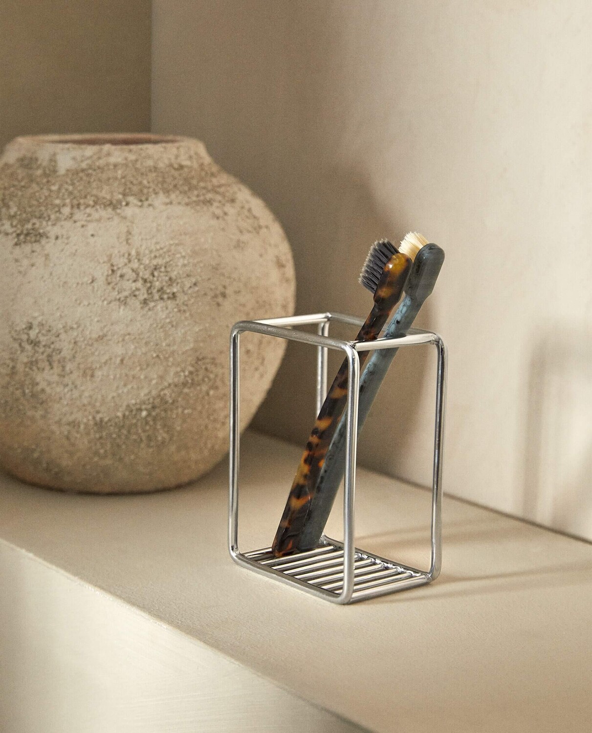 Стакан для ванной из хромированного металла.