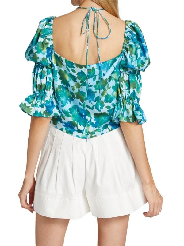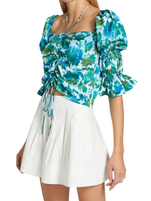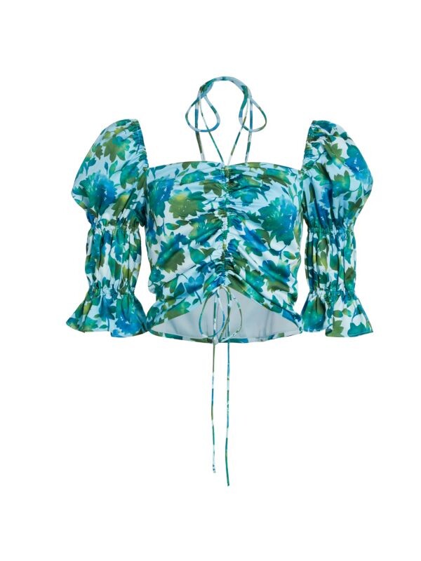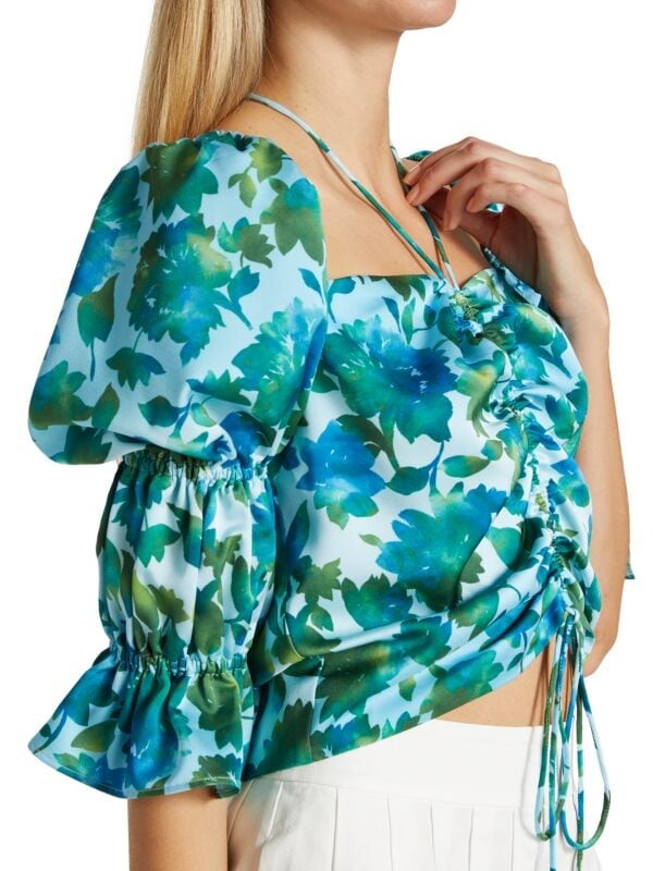 Топ Raveena от AMUR с ярким цветочным принтом украшен манжетами с рюшами.