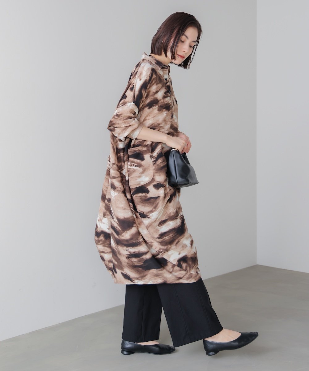POINTПлатье-рубашка с ярким, сдержанным пятнистым узором. Имеет практичные карманы. Само по себе создает изысканный, повседневный стиль. Свободный крой и силуэт «кокон» идеально подходят для того, чтобы подчеркнуть вашу фигуру.