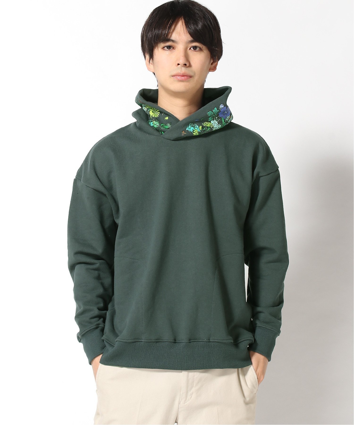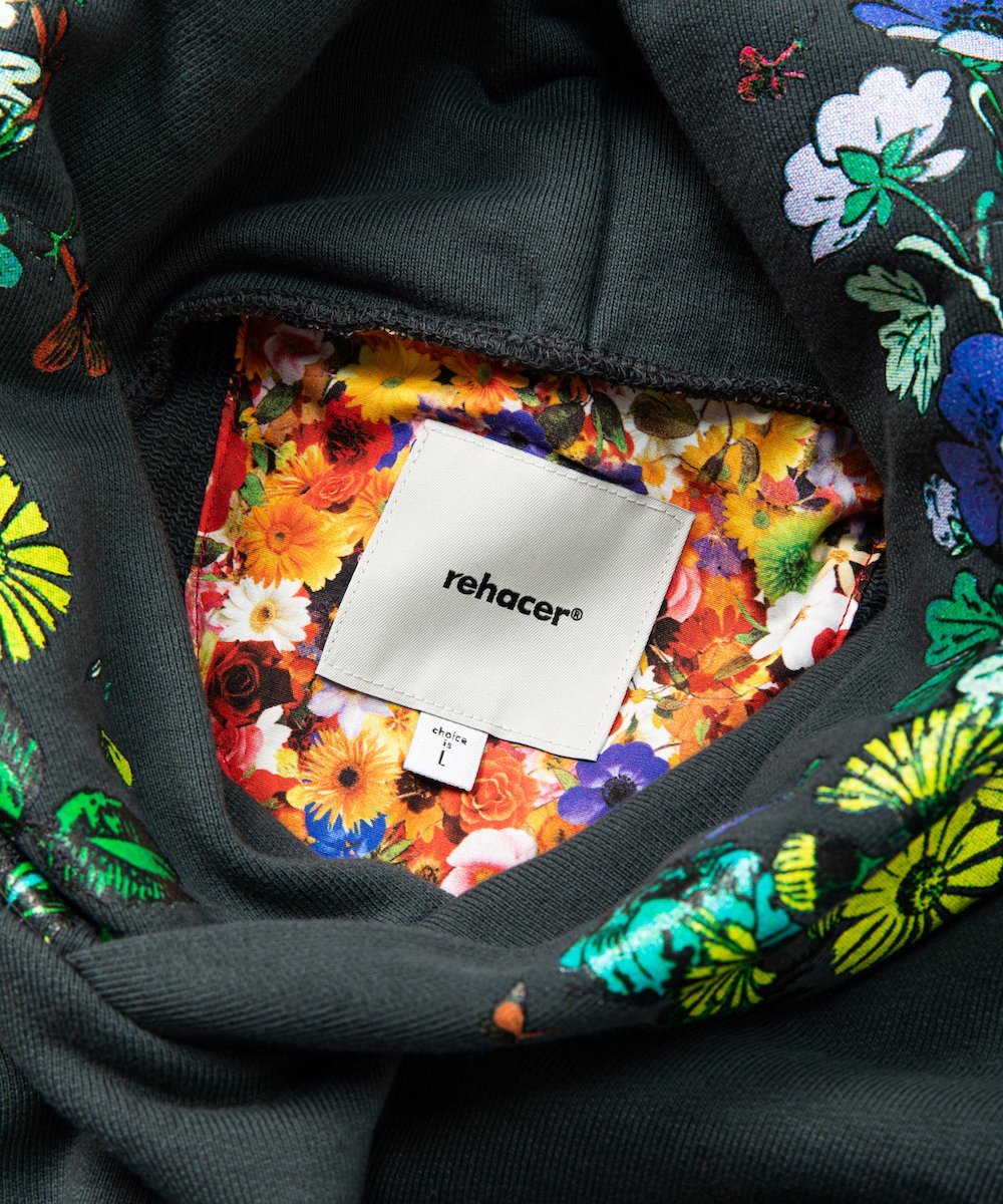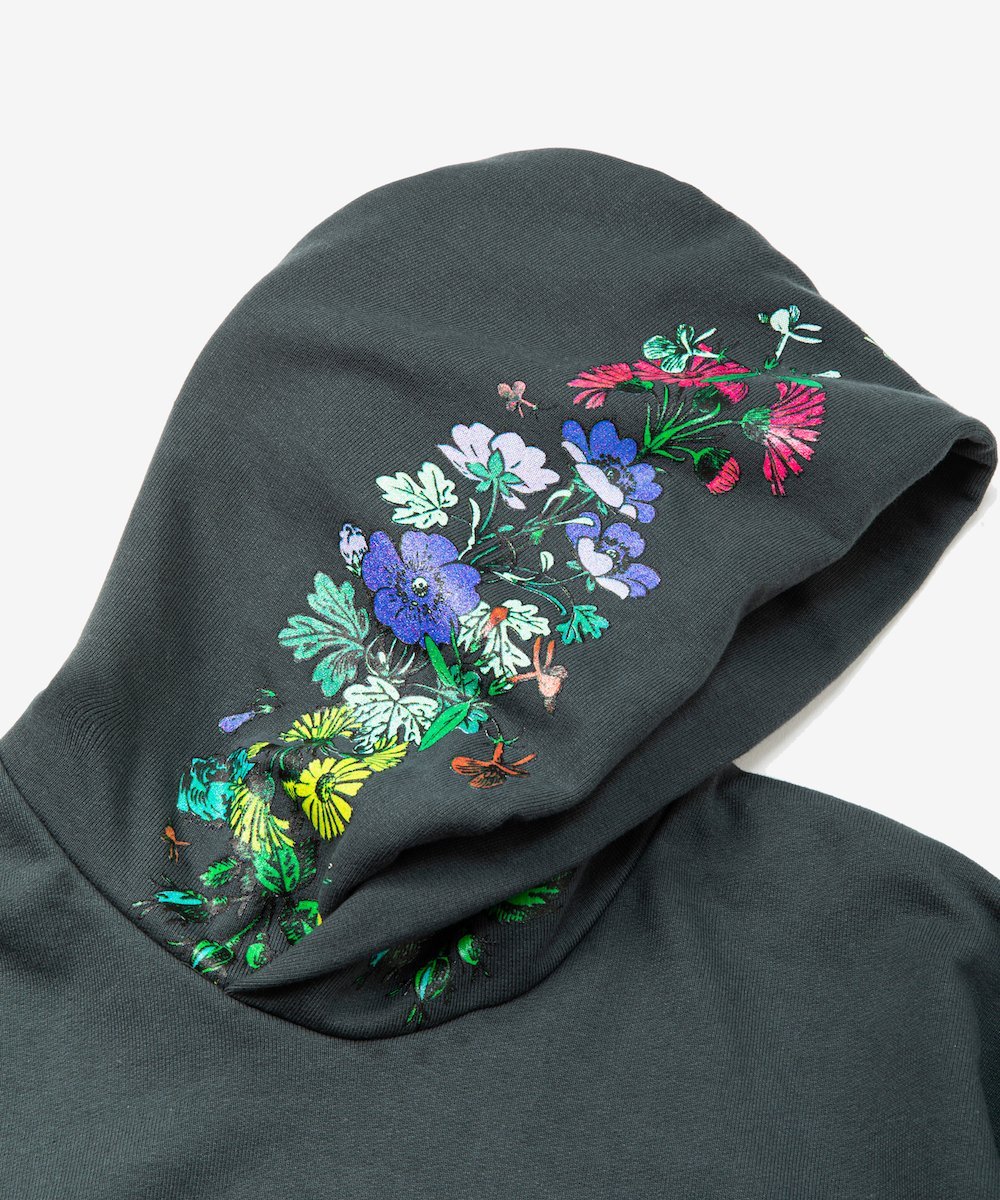 Эта толстовка с капюшоном украшена смелым цветочным принтом вокруг капюшона, напоминающим стиль New Wave 1980-х годов.