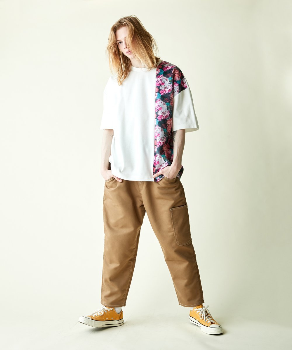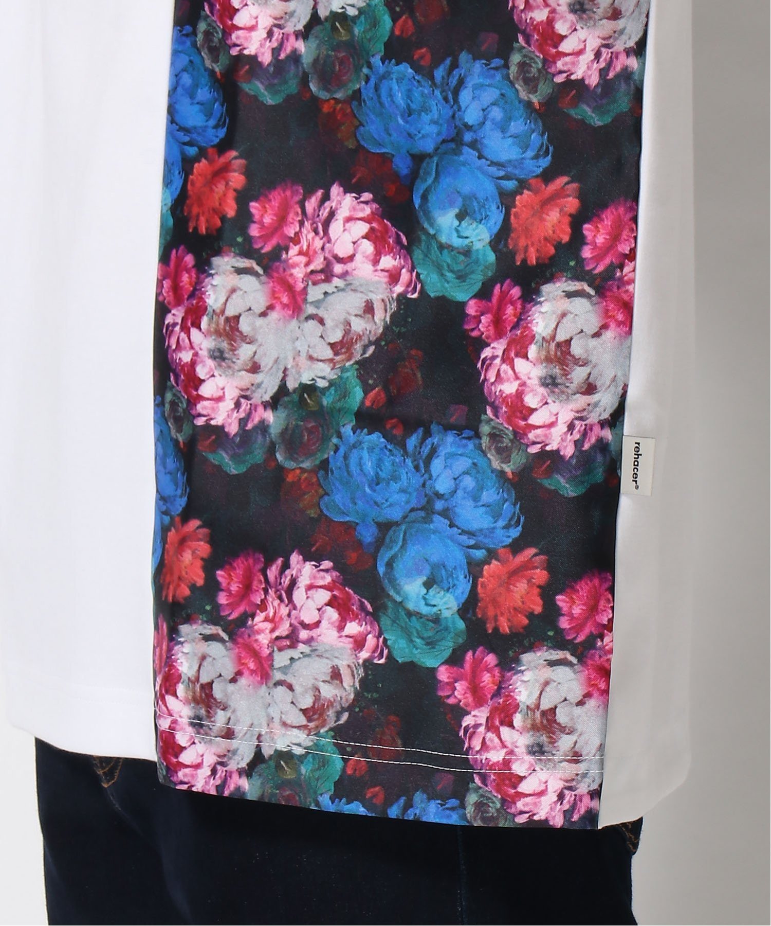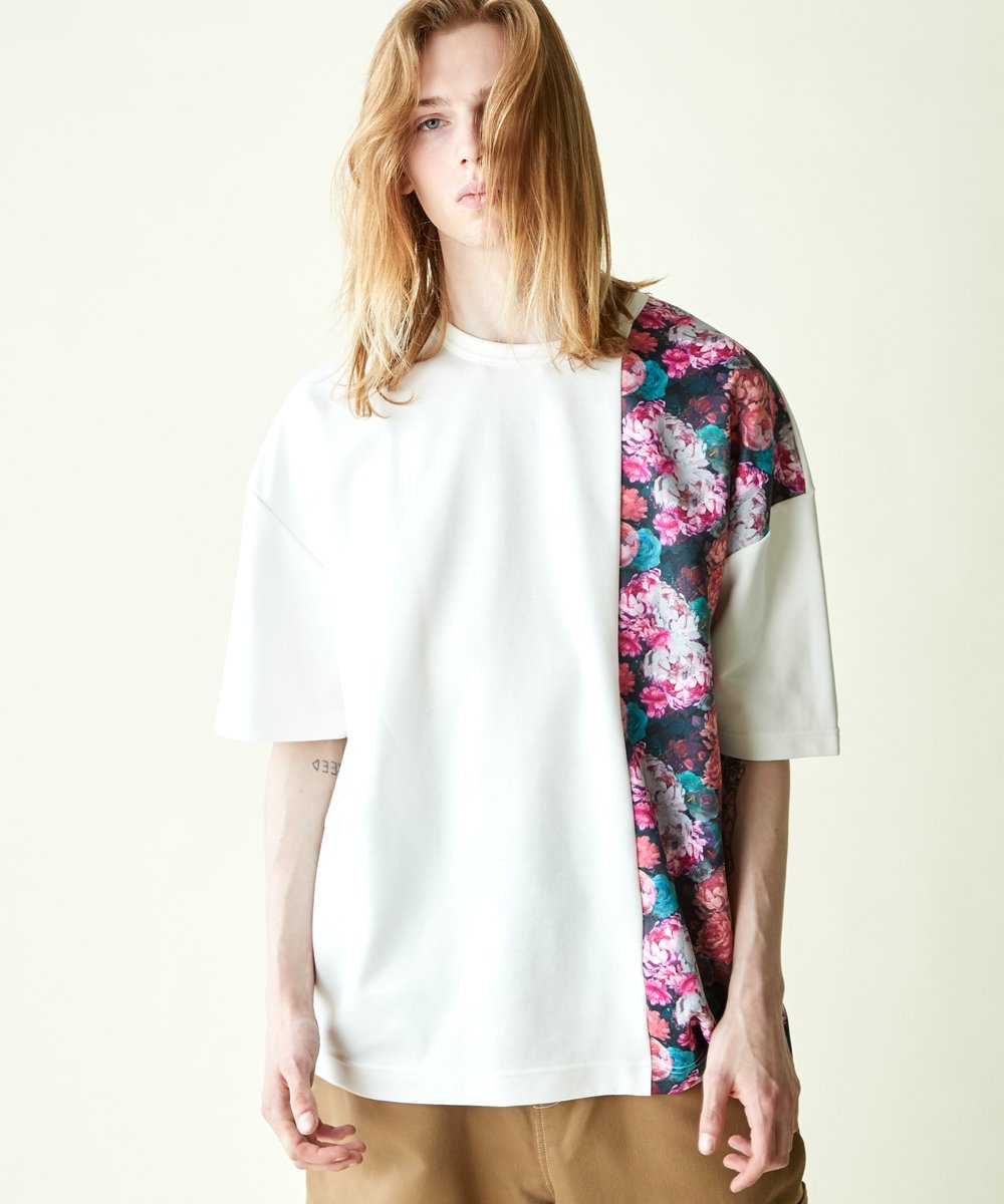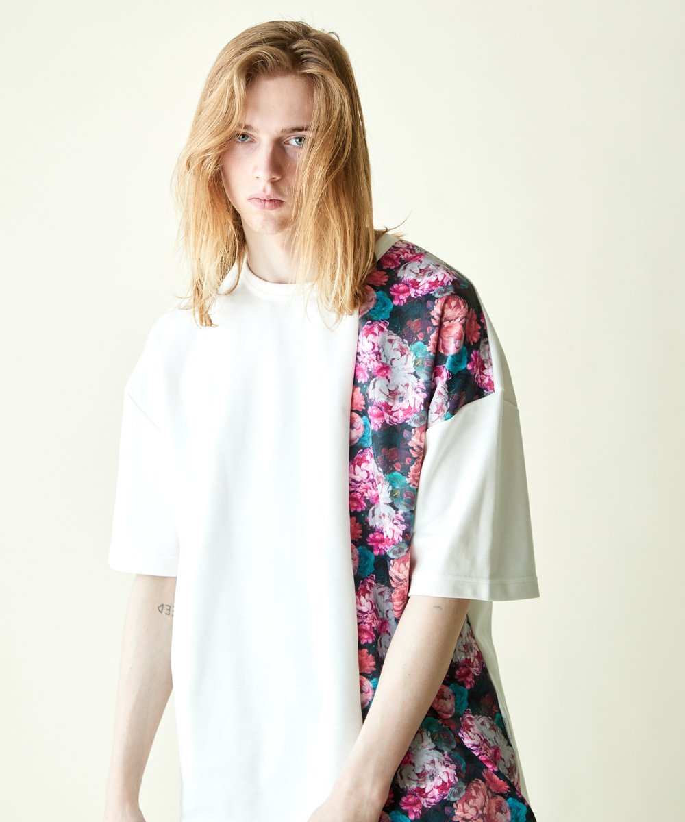 На швах использован смелый цветочный узор в винтажном стиле, нарисованный приглушенными акриловыми красками. Силуэт с приспущенными плечами обеспечивает свободную посадку как для мужчин, так и для женщин. Рост модели: 183 см, размеры: белый/большой, черный/средний.