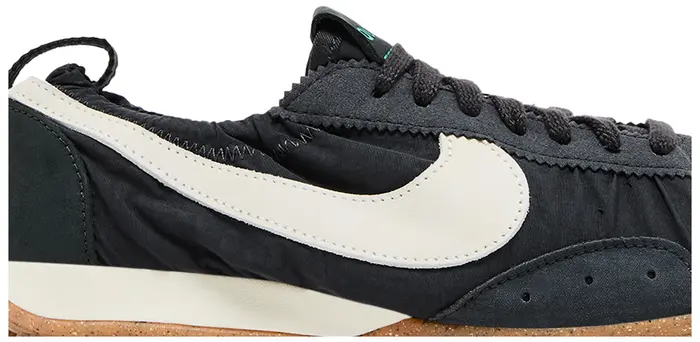 Оригинальная модель Nike получает усовершенствованное обновление с использованием плиссированного нейлона и цельной кожи, сочетая свое наследие трековых гонок с современной балетной эстетикой. Результат — обтекаемая обувь, которая идеально сочетает дизайн Jacquemus и спортивное наследие Nike. Среди тонких деталей: брендинг Jacquemus можно найти на язычке, пятке и стельке. Специальная упаковка Blue Ribbon Sports связывает прошлое с настоящим, перенося нас из Бивертона в Париж.
