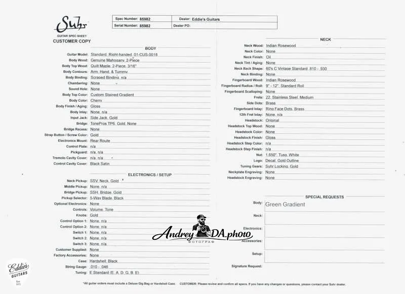 Suhr Standard, гриф из палисандра - зеленый градиент #85982 676 870₽