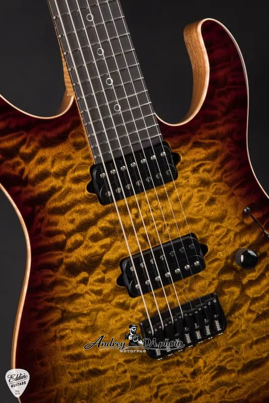 Suhr Modern 7 Quilt Roasted в цвете Bengal Burst - это потрясающий инструмент с высокой точностью изготовления, который является свидетельством стремления Suhr раздвигать границы современного дизайна гитар. Созданная для музыкантов, которые требуют безупречного тона, легкости игры и привлекательного внешнего вида в одном универсальном 7-струнном инструменте, эта гитара сочетает в себе премиальные породы древесины, передовые электронику и внимательное мастерство, в том виде, в каком это умеет Suhr.